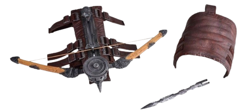 Имеет простенький арбалет на кисть. Тот стреляет маленькими стрелами или дротиками со снотворным. Правда дальность у него небольшая из-за размеров. Но он не раз выручал девушку в бою и её скрытных делах.