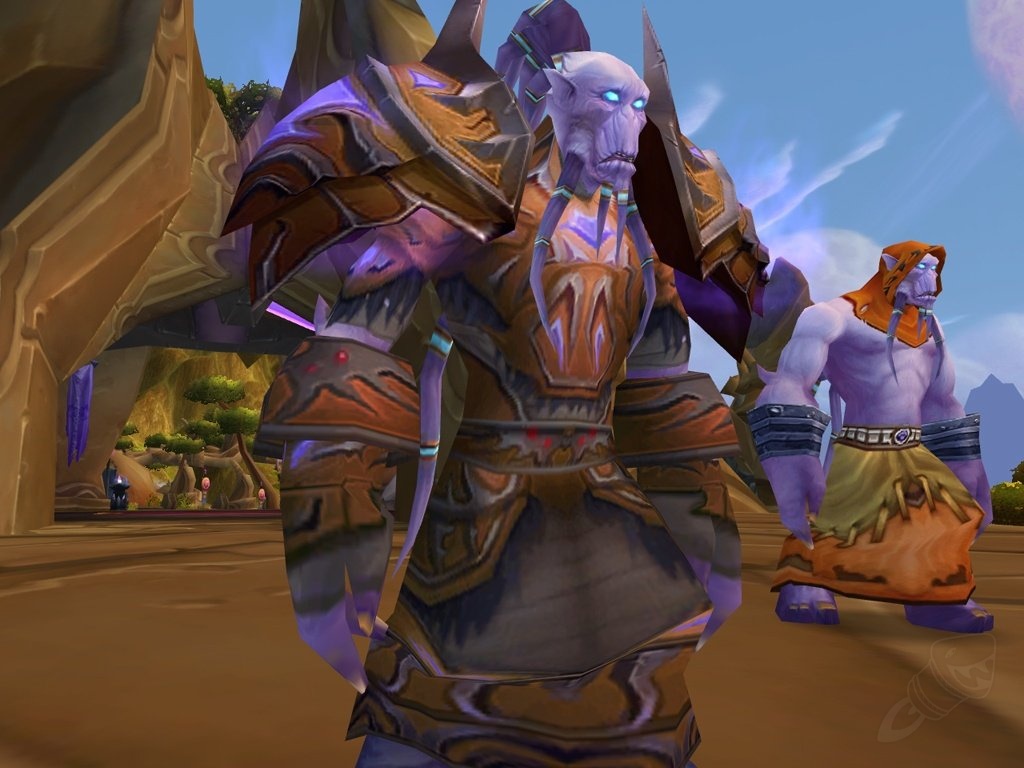 Обликом смертным для этого дракона является коричневый орк, с татуировками загадочных чёрных змей с острыми мордам. Он одет в обычные традиционные одеяния орков, легкие и созданные в основном из кожи. Где-то присутствует традиционная волчья, а в иных случаях предусмотрены более экзотичные талбуки и даже редкие элементы с кожей копытня, пробитой мелкими заклепками. Вся эта одежда выглядит довольно просто для какого-то жителя Азерота, но здесь каждый охотник будет ценить ресурсы, используемые из своего трофея. Не даром те же орки из клана Громоборцев надевали на поверх обычной брони множественные укрепление из костей рилаков, гроннов и других чудищ Дренора, на которых охотились, либо приручали. Или, например, Северные волки, которые во многом одеваются в одежду из шкуры северного волка, отличающегося более светлой шерстью, чем их агрессивные чёрные сородичи.