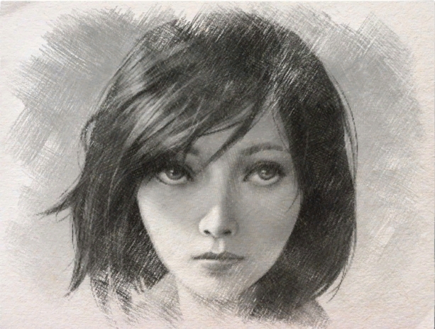 Каково же ещё лицо? Наверняка первое что вы заметите — обрезанные чёрные волосы, и ведь видно, что их остригли. Юное для двадцати восьми лет лицо, весьма маленькое и миловидное. Миниатюрный носик, что весьма хорошо вписывается в общую картину. Глаза имеют серо-голубой оттенок, но стоит приглядется, то вы поймёте, что правый глаз имеет небольшую капельку жёлтого, а также зрачок очень напоминает кошачий, хотя ближе к округлости. Взгляд каждого глаза уникален… Когда смотришь в левый глаз — видишь лишь пустоту, а смотришь в правый — хищника.