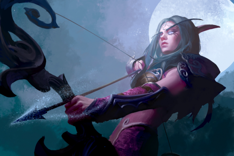 Гнев Элуны — Жрица прикрывает свои серебряные очи, сохраняя тишину и ясность в своём разуме. Нашёптывая короткие молитвы на родном языке, и обращаясь к своей богине, Ария просит её озарить своим гневом врагов её дочери, буквально сбрасывая звёзды их самонадеянные головы.