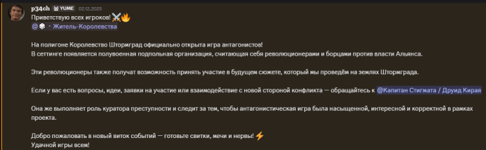 да и коль мы говорим про лор то западный край пустой после 4 войны. Буквально по книгам всех мобилизовали для войны с ордой и многие померли где-то пол Лордероном, Бреннадамом или Стромгардом. Я считаю что некоторые игроки на криминале просто тролли что заходят ради того чтобы позлить психически неуравновешенных людей, а эти люди ведутся и творят дичь. На сий ноте прошу в случае каких вопросов писать в дискорд, мне тут трудно переписываться .