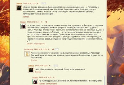 Мне глубоко все равно, что будет в будущем, правда. Не стоит заглядывать и на Аргус и в БФА. Говорим про конкретный, данный период. Сейчас из ги Армия Альянса ливают люди в Серый Дозор, открытым текстом ГОВОРЯТ, что дозор — часть Альянса. Говорят не левые люди, а те, кто именно служат в дозоре (откуда знаю? Мне предлагали ливнуть из Армии Альянса, где я состою фактически, в дозор, мол, это не имеет никакой разницы). Неужели трудно просто изменить текст в топике на данный период времени? Это лень? Нежелание? Или вы банально запутались, что ваша ги из себя должна представлять? Не пудрите тогда головы игрокам, пожалуйста.