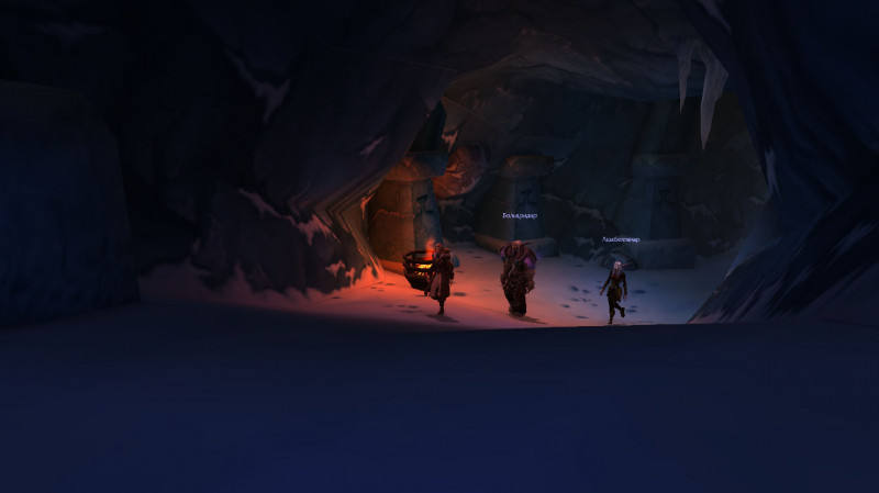Время поджимало. Никто не знал, что ждет героев в пещере. Пришлось исцелить жрицу — успешно. Хитрая Аша могла двигаться сама, но ей так не хватало ласки, поэтому эльфийка решила остаться на руках у Больдридира, рану которого перевязала Скарлет бинтом. Наконец-то пещера. Никакого звука кроме хруста снега и удара капель об камень. Герои прошли в просторный зал. Вокруг валялось много добра: провизия, ящики с бинтами, одежды и оружие. Рядом лежали шесть спальных мешков. Странно, ведь противничков было-то четверо. Да никто и не обратил внимание. На небольшом выступе из скалы громоздятся горки из монет и прозрачный вазон, внутри которого и лежал тот самый фрагмент.