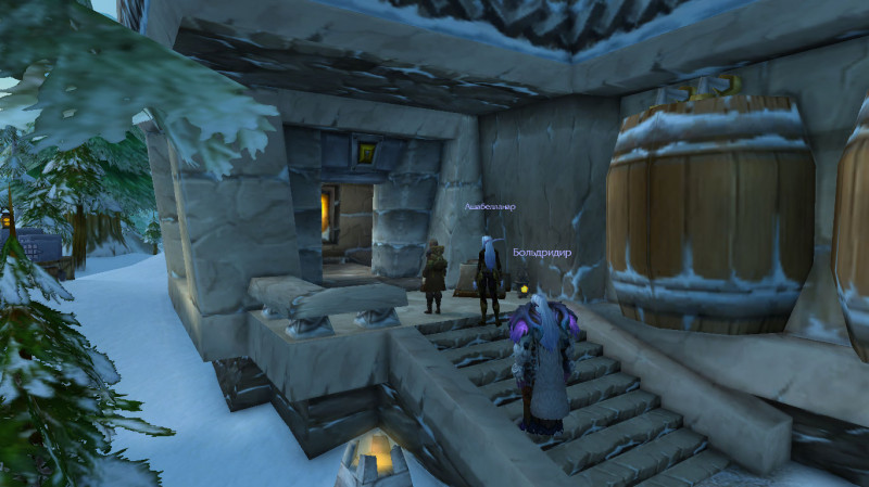 Наши герои добрались до Караноса. Косые взгляды местных немного насторожили эльфов, которые тем временем радостно шагали по заснеженным дорогам. Таверна «Громоварка» затихла на пять секунд, вытупив глаза на калдорай. Пришлось развеять молчание громким приветствием. Доктор Рэйвенвуд решила заказать какие-то напитки, заодно и разузнать что-то у владельца таверны. Пока беседа шла сильным напором, эльфийская жрица краем глаза заметила, как на кухне туда-сюда гонял дворф, что-то перебирая рученками и бросая дикие взгляды на новых посетителей. Коротун настойчиво поманил Ашу рукой к себе, на что она легко купилась.