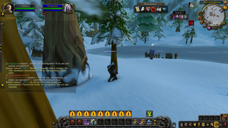 Фраеры остановились на входе в пещеру, мило показывая свою обитель. Ситуация накалялась. Острые ответы друида, который всеми силами пытался выиграть время, уже поднадоели бандитам, поэтому они дали незаметный для глаз Больда сигнал четвертому участнику, который хитро прятался за поленом с веревкой в руках.
