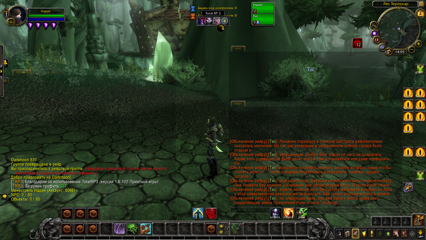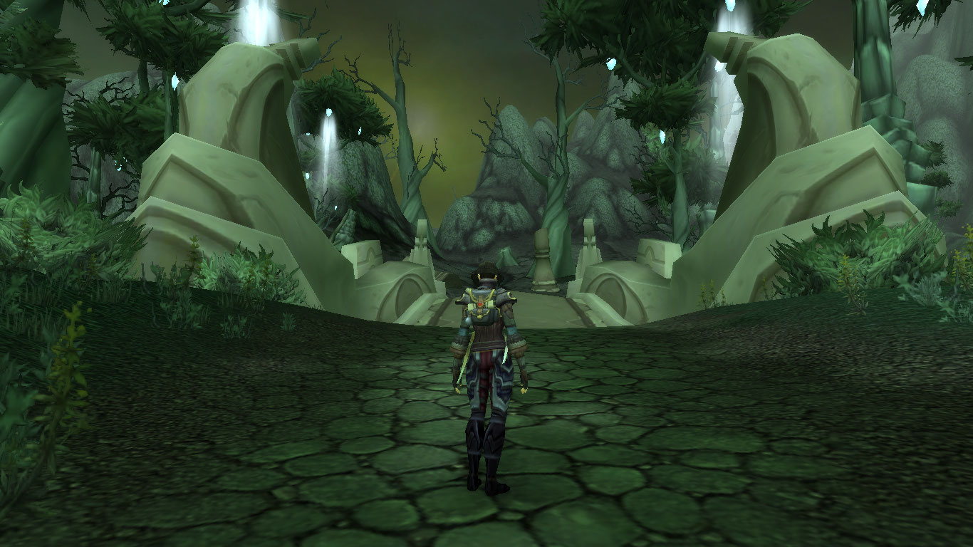 На утро, отправившись в сторону Долины Призрачной Луны, Надин осознала, что путь к ней был достаточно спокоен и без особых происшествий. Перед отправкой она пообедала из того что у неё было, но ни голод, ни тянущаяся скука пути не могли погасить в ней острый фанатизм в изучении магии и таинств сокрытых от неё. И даже начало собственного путешествия не могло оказывать на неё как-то негативно, лишь азарт неизвестности тянул её в беспросветные дали бывшей святыни народа Дренеев. Лишение себя практики в колдовстве привело к небольшому желанию высвобождения внутренней воли и создания хаоса вокруг так и хотелось вырваться наружу, но приходилось сдерживать себя. Лес Тероккар был достаточно спокойный в дневное время, чего не скажешь о ночном, когда наружу выходят различные хищники скрывающиеся в ночной глуши. Наконец девушка увидела полную разницу между отдельными частями Запределья. Через мост, девушка видела практически полностью мёртвую землю окруженную мёртвыми деревьями торчащими из земли. Граница, между жизнью и смертью.