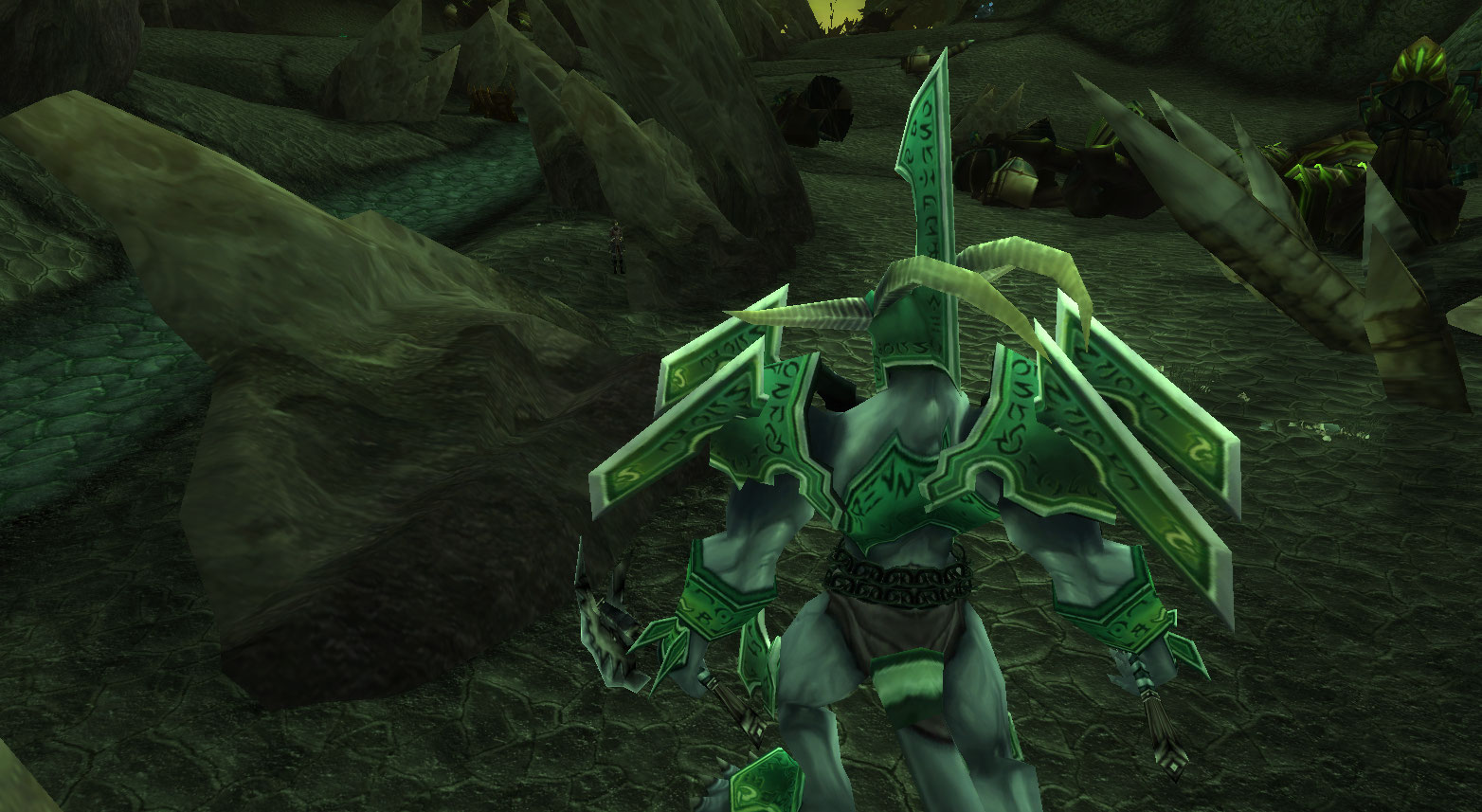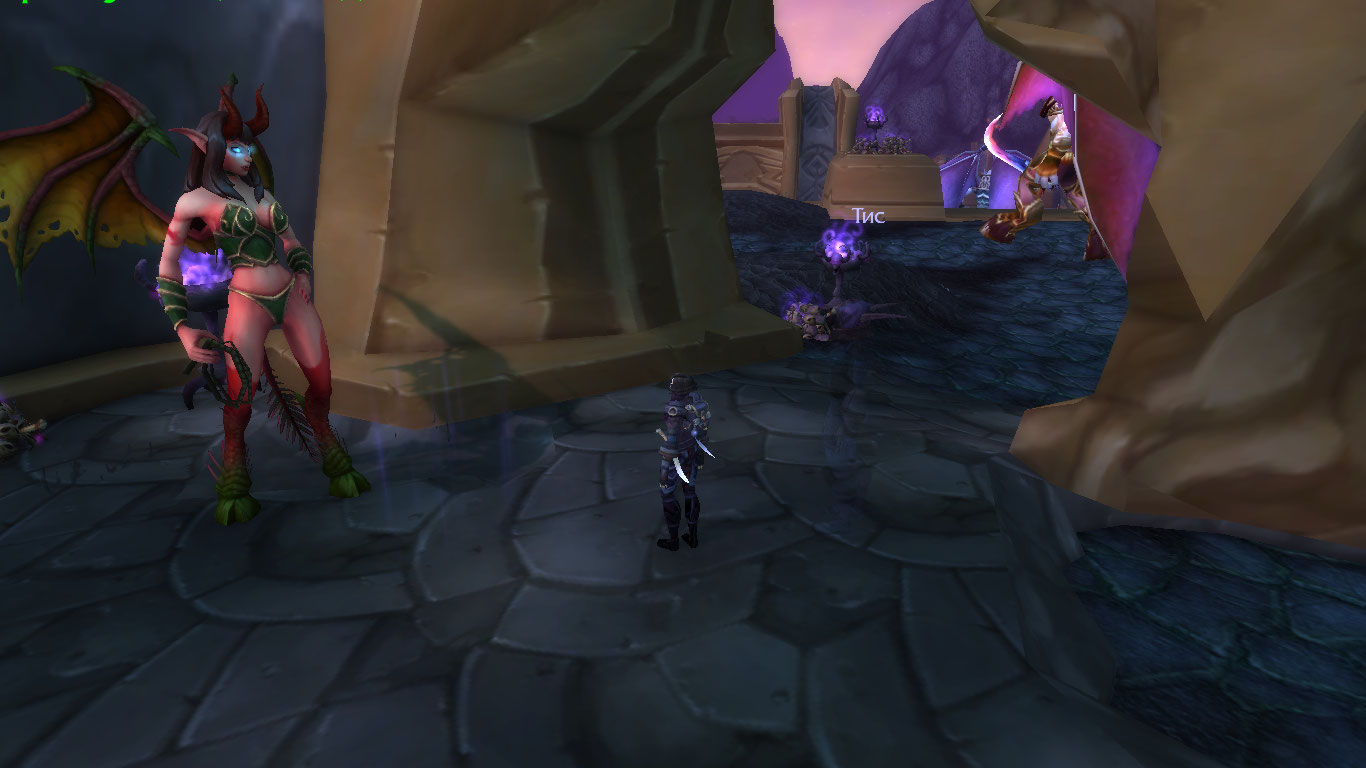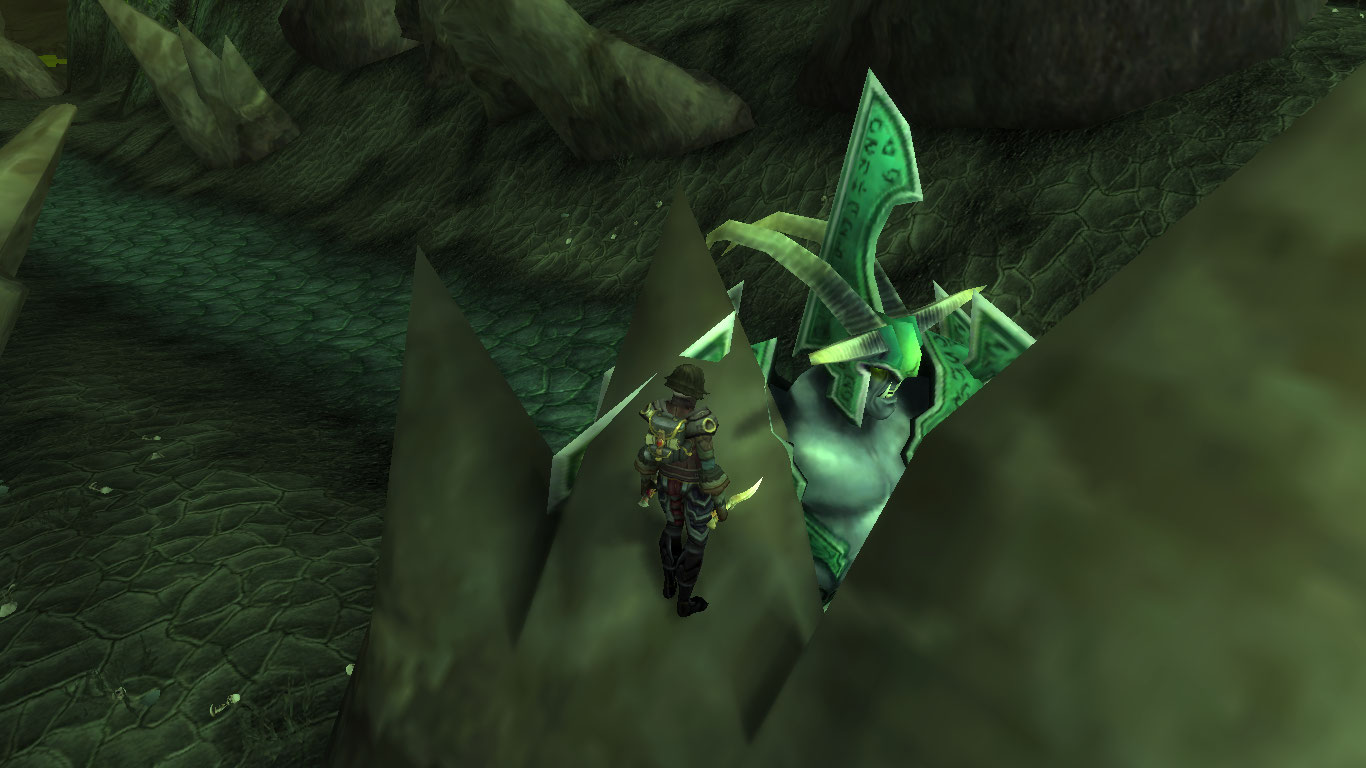 Убирая кинжал в ножны, а срезанную траву в сумку, Надин поднялась и отправилась вперед по неизвестным ей пустошам мёртвого мира. Пик славы и мощи Гул’Дана простирался далеко, Рука Гул’Дана названная в честь взбушевавшегося духа стихий и скверны, а так же одноименного заклинания чернокнижников школы демонологии наполняли сердце чернокнижницы решимостью. Однако не только восходящую гору она наблюдала, краем глаза она увидела демона. Естественная фауна любого оскверненного мира. И какой бы естественной она не была, она была так же и агрессивной. Без своей магии, справится с таким опасным демоном было достаточно сложно, почему Надин и предприняла тактику уклонения и избежание самого боя. Тихий шаг девушки и её украдка за чёрными скалами не помогли скрыть своё магическое приутствие. Сильный колдун всегда чуялся другим магическим созданием за борозду, а уж изголодавшийся демон всегда будет рад утолить голод. Почуяв добычу, свирепый страж гнева направился прямо к Надин.