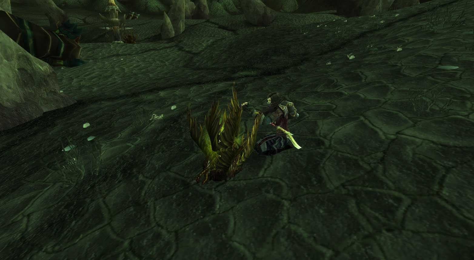Ступая на мертвую землю и обрамляя свои сапоги серой пылью, Надин продолжила идти по назначенному пути. Суккуба Тристи что была связана с Надин и могла воздействовать ментально, передавала свои слова, на которые неохотно отвечала девушка и желала лишь сделать все самостоятельно. Взбираясь по рядом стоящей скале и осматривая территорию, Надин столкнулась с тем что ей тут же пришлось развернуться не по своей воле. Договариваться с демоном было себе дороже, о чем и негативно сообщила Надин из-за уловок сайаады. Надин не долго тратила своё время на нахождение в мёртвых и пропитанных скверной пустошах, прежде чем ей наконец-то удалось найти растение необходимое для Кнретада. Девушка пригнулась, дабы начать резать под корень это самое растение, что смогла сделать достаточно ловко, ведь она собрала, как ей кажется, нужное количество, дабы удовлетворить желание чернокнижника.