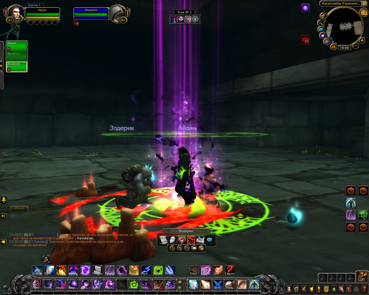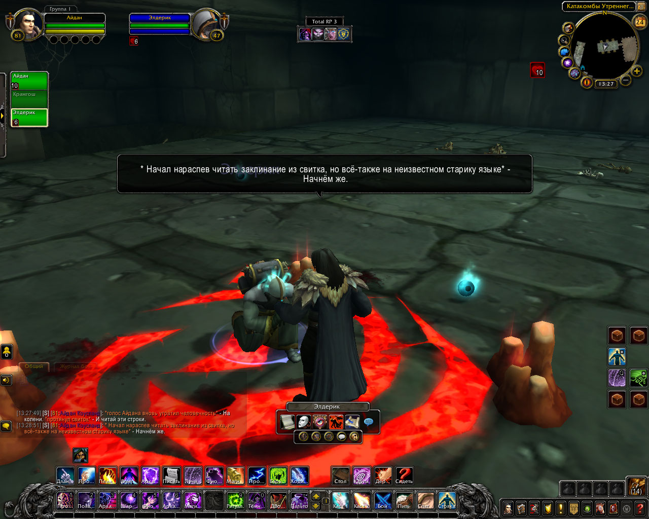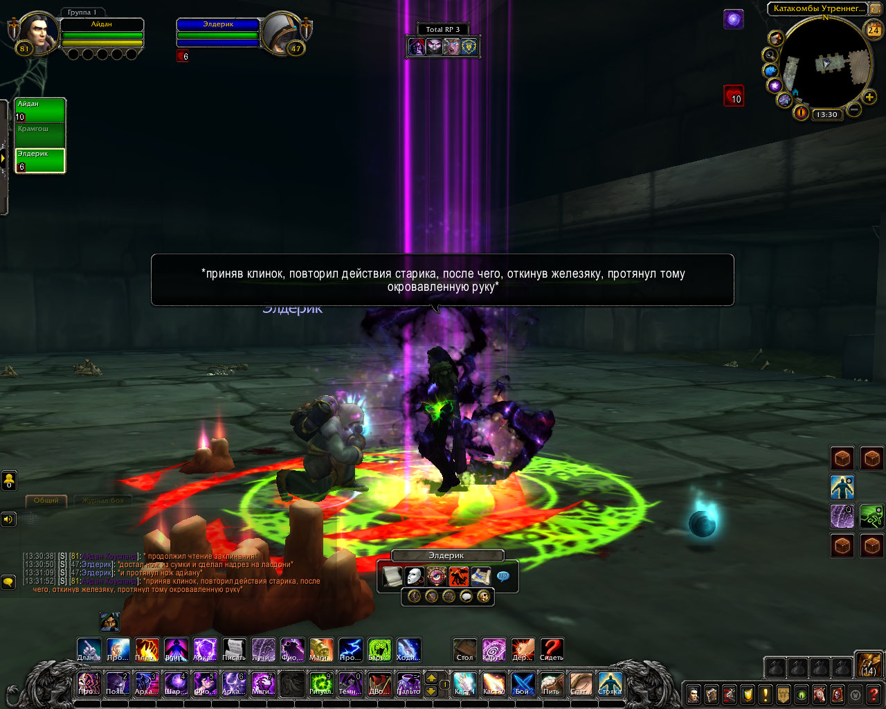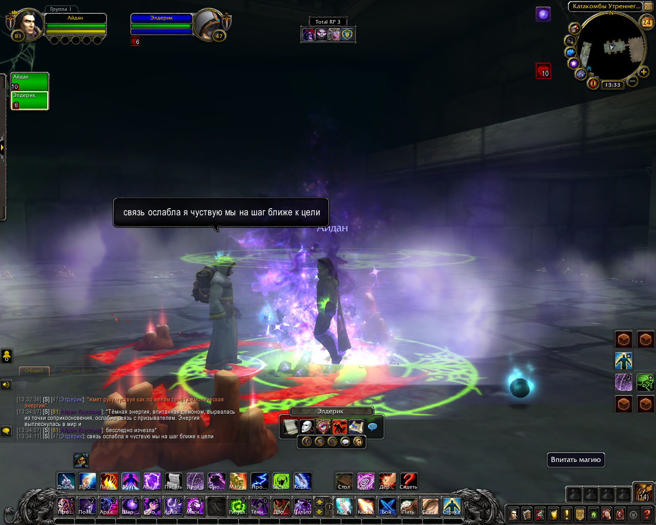 Ритуал из свитка: Только прибыв в эти земли, компания посетила библиотеку Штормграда и украла оттуда древний свиток. В нём был описан ритуал по разрыву связи, но в нём же был и ритуал, для её ослабления. Теперь они были готовы. Круг вновь послужил им. Айдан передал свиток старику, а сам начал произносить заклятие.