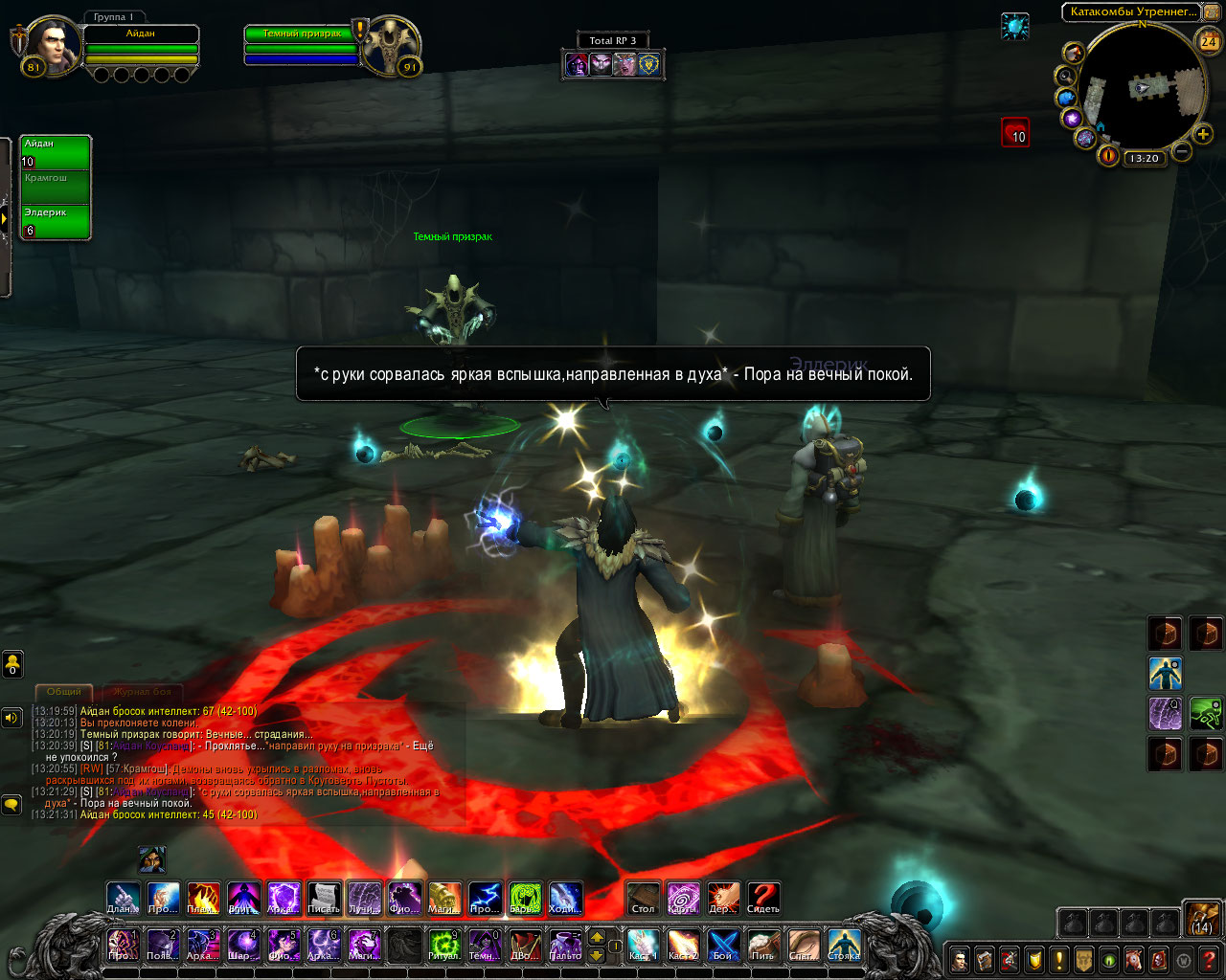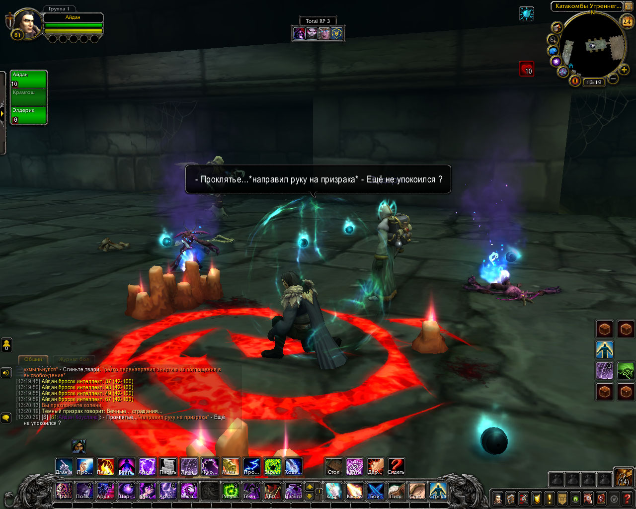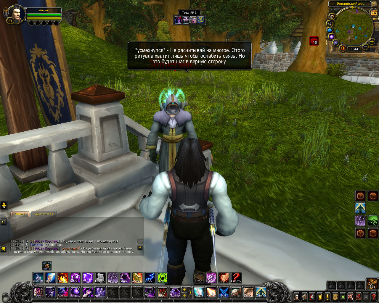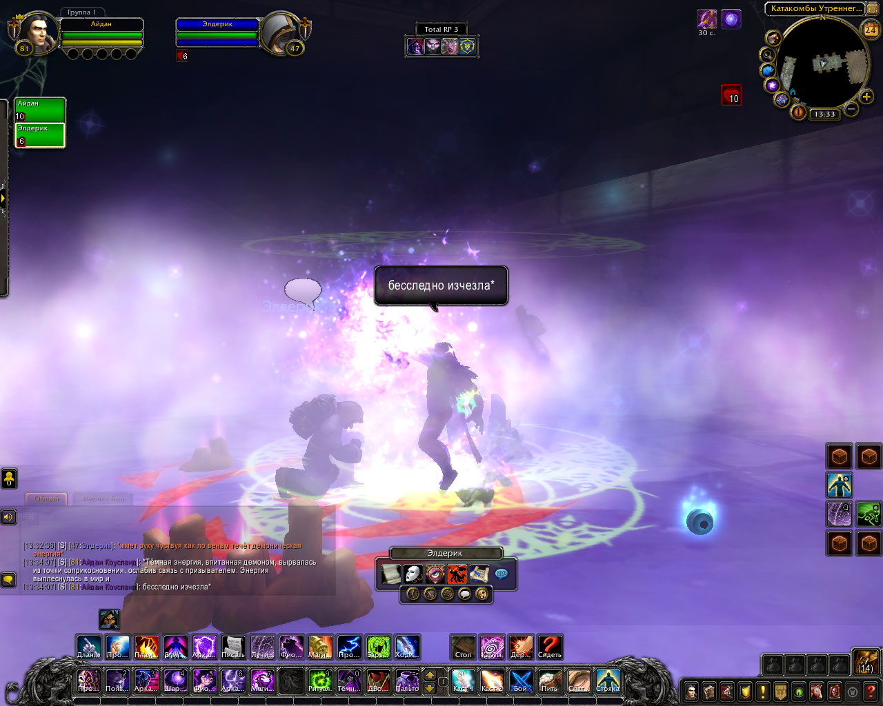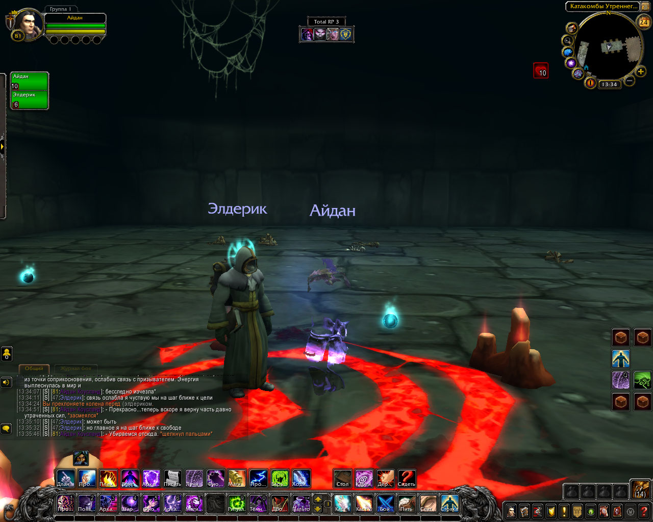 Ритуал из свитка: Только прибыв в эти земли, компания посетила библиотеку Штормграда и украла оттуда древний свиток. В нём был описан ритуал по разрыву связи, но в нём же был и ритуал, для её ослабления. Теперь они были готовы. Круг вновь послужил им. Айдан передал свиток старику, а сам начал произносить заклятие.