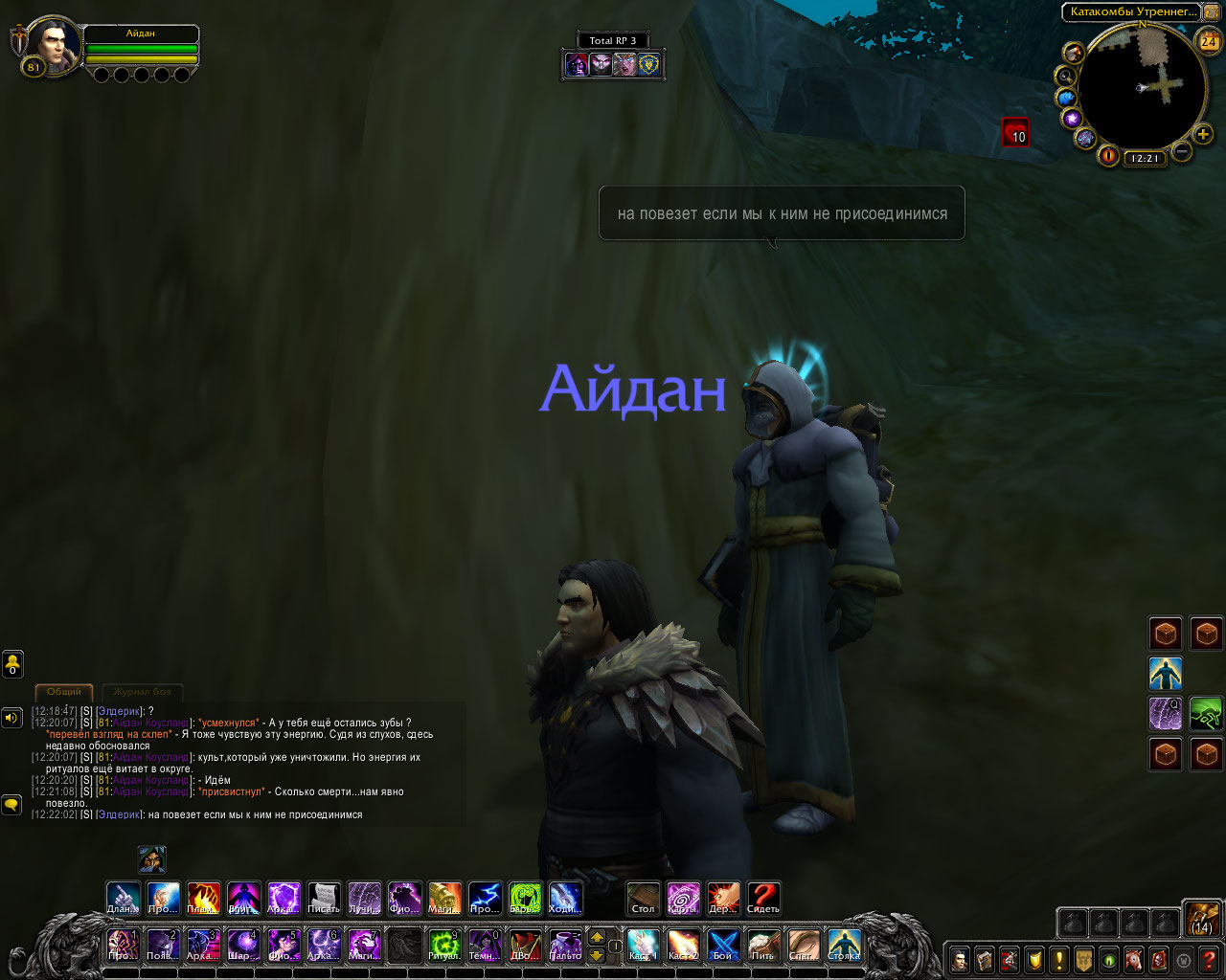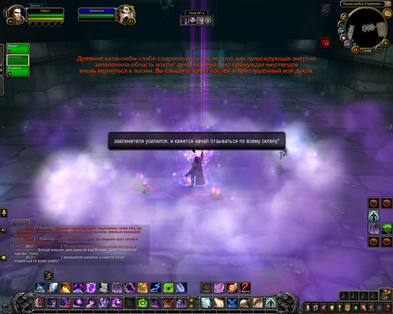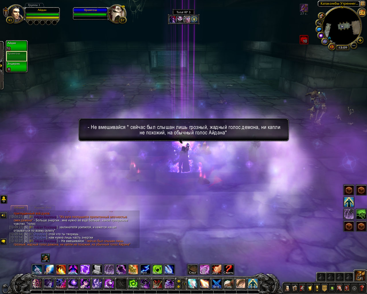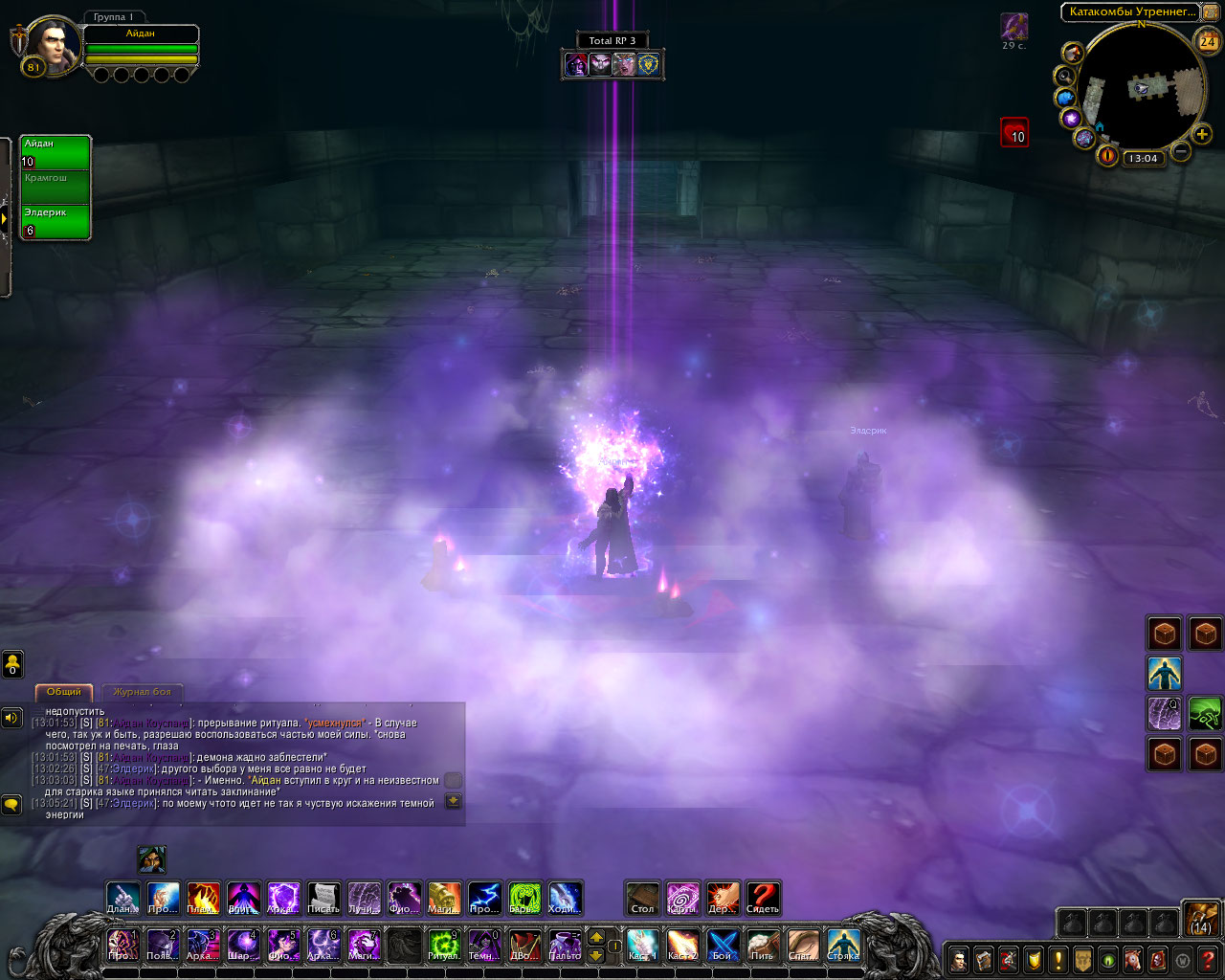 Ритуал из свитка: Только прибыв в эти земли, компания посетила библиотеку Штормграда и украла оттуда древний свиток. В нём был описан ритуал по разрыву связи, но в нём же был и ритуал, для её ослабления. Теперь они были готовы. Круг вновь послужил им. Айдан передал свиток старику, а сам начал произносить заклятие.