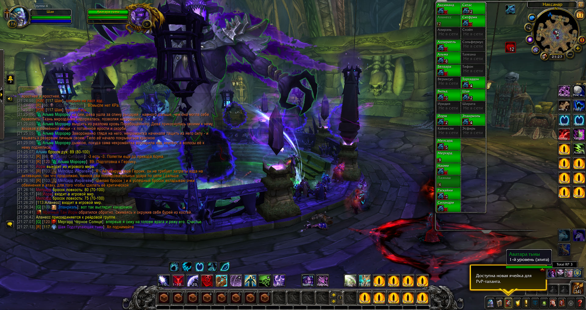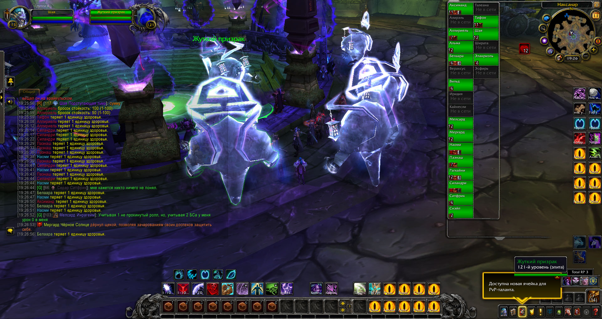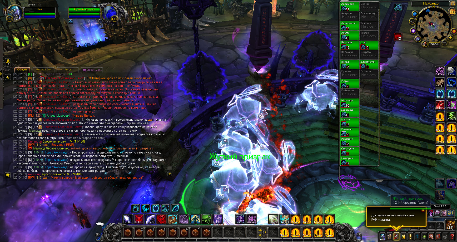 У мертвецов эти был опыт в подобны ритуала. Походы за энергией для Призрачного Ужаса говорили об этом сами за себя. Рыцарство училось, опыт рос. Ритуал начался. Тенал'Тазад возвела руки к потолку, ревя на наречии смерти и напевая песни столь ужасные для слуха, что живой, услышав это, просто сошел бы с ума.