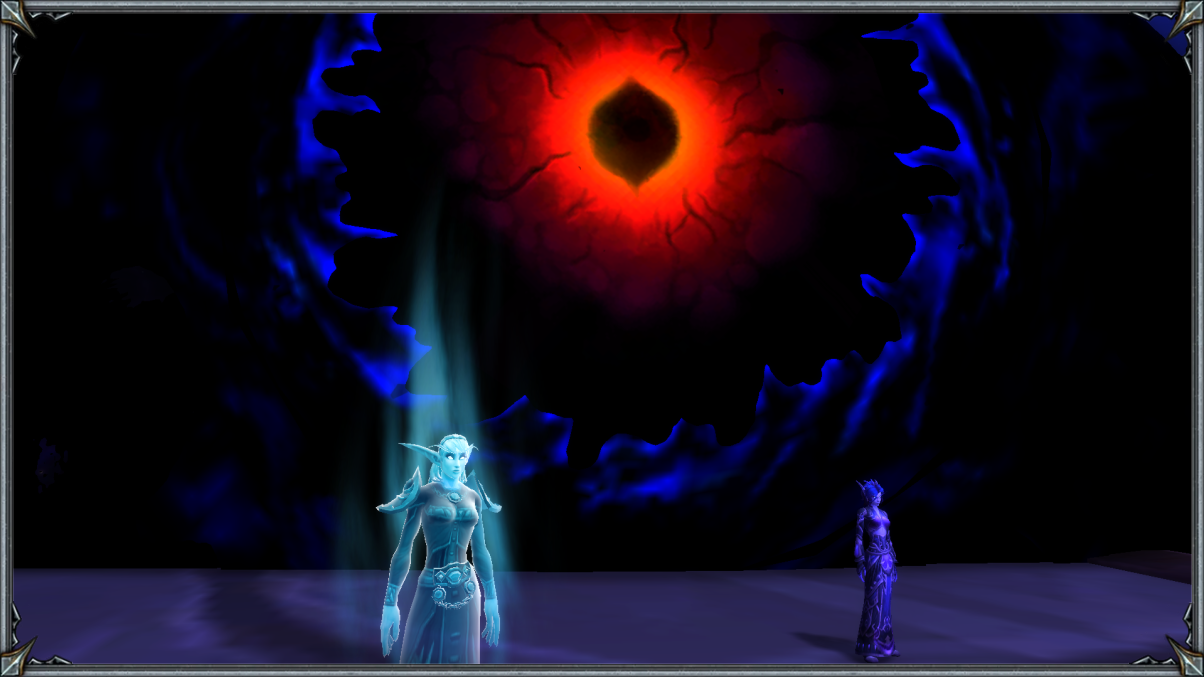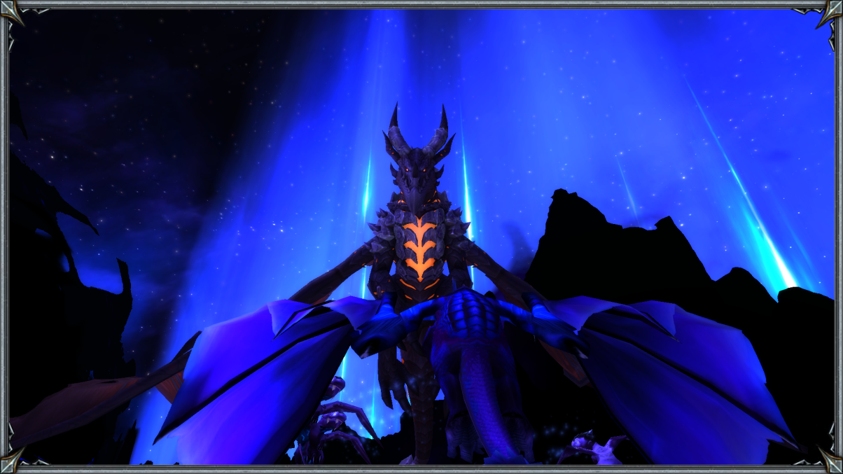 Очнулся Астериан уже не в форме Манфреда фон Эшфорда, а в своём истинном лике Чёрного Змея. Тело ощущалось довольно странным образом, словно дракон управлял им издали, а не изнутри. Объяснить словами было невозможно — это надо лишь почувствовать. Дракон попытался встать и… На удивление у него получилось, хоть всё тело и ломило. И как только он поднялся на лапы, пред ним предстала Азерот. Поглощённая Тьмой и щупальцами Глубинного Бога, она кричала о помощи, а тёмные всполохи Бездны медленно поглощали и истощали её, передавая всё с помощью нитей в это смежное пространство, которое словно служило неким проводником энергии, что в свою очередь отправлялась куда глубже во Тьму — За Пределы понимания любого смертного создания. Смотреть на умирающую планету можно было хоть вечность, однако Астериан пришёл сюда с целью, а не с любованием, именно поэтому он вскоре и развернулся и увиденное повергло его ещё в большее предвкушение. Всё застилала Бездна и пред ней стоили драконы сумеречной стаи… Они взирали на что-то, но то было скрыто под толщей теней и посему дракон двинулся вперёд, дабы развеять эту завесу тайны.