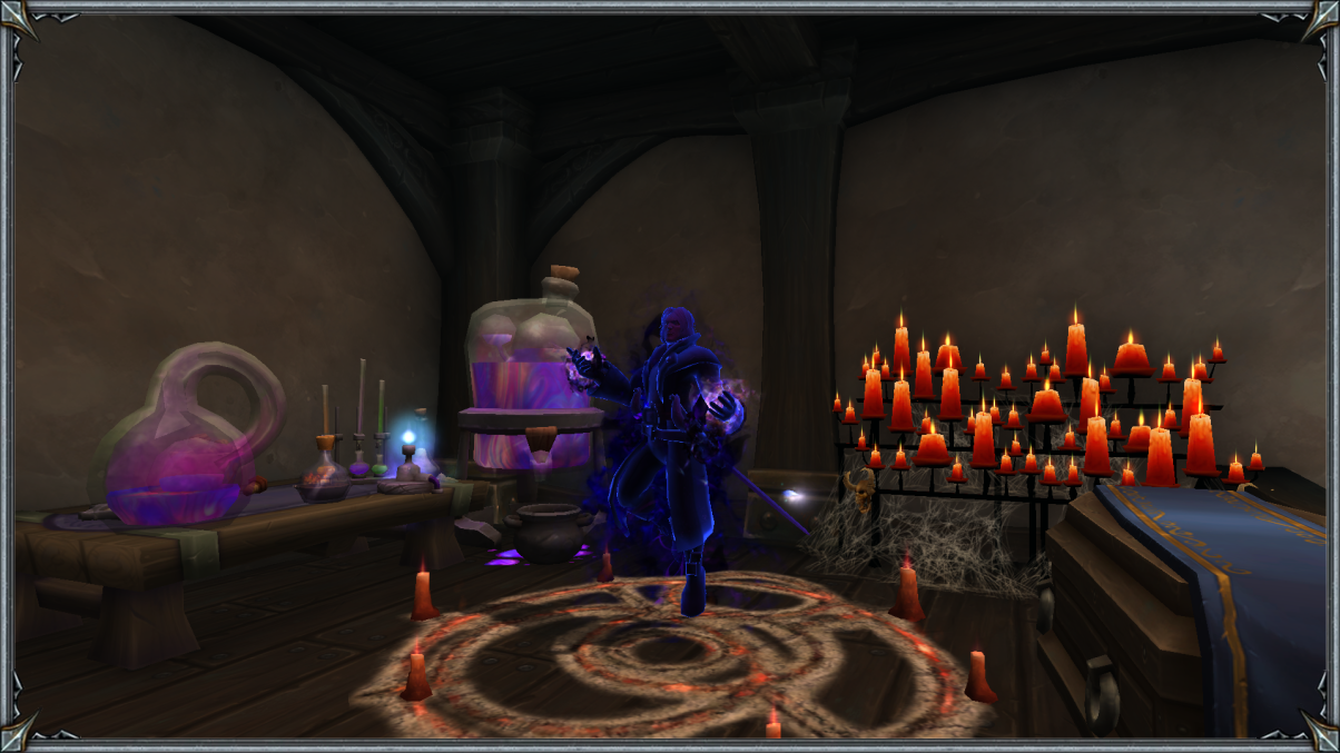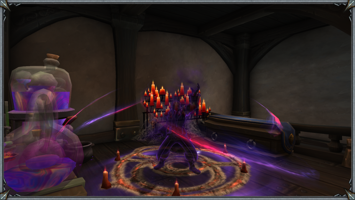 Вскоре дракон вновь оказался подле излюбленной книги. Ему требовалось пробежаться глазами от и до, дабы точно ничего не упустить из виду. Страница за страницей и вот, он уже полностью готов приступить к грядущему. Это погружение позволит ему ступать дальше, ибо сил он уже подле дренеев набрал, в тени скрывался и пожирал слабых, медленно рос как паразит. Сейчас же требовался большой бум для его тщеславия и силы. Чёрный левиафан направился к алхимическому столу и спустя всего лишь пару мгновений наконец-то нашёл заветные склянки. Ему требовалась лишь одна и вскоре она была у него в руках. Теперь оставалось лишь сесть в центре давно приготовленного ритуального круга, чей простор объяли мощные знаки-глифы вырезанные на языке, что напоминал те резные узоры на пирамидах Ни'алоты. После того как он приземлился на пятую точку и глубоко выдохнул, попутно прикрывая и глаза, то почти тут же и откупорил склянку с Сумеречной Апатией, принимая в себя полную дозу этого вещества. Эффект был моментальным. Глаза его быстро распахнулись, а ладони упёрлись в деревянный пол. Вены налились пурпурным свечением, а очи фиолетовым маревом. Он чувствовал одновременно и боль, и эйфорию, и даже слабость, ту самую, что уносила его разум в сновидение и самую настоящую апатию. И лишь из последних сил Астериану удалось приступить к важнейшей части — прочтению заклинания. Облик Бездны обуял всё его туловище, всю его душу. А губы зашевелились в немом ужасном потоке. Сначала слов и вовсе не было, а затем мерзкий язык, который только и слышен в Ни'алоте, стал сотрясать стены Часовни, привлекая давно усопшие души. И как только последнее слово было сказано — глифы на круге загорелись, свечи объяло пурпурное пламя, а дракон повалился на пол, перенося свой разум в совершенно другое измерение. К сожалению телом он войти туда ещё не был способен, ведь во многом это было знание сумеречной стаи. Ещё многое стоило познать, прежде чем пытаться рисковать такой хрупкой материальной оболочкой.