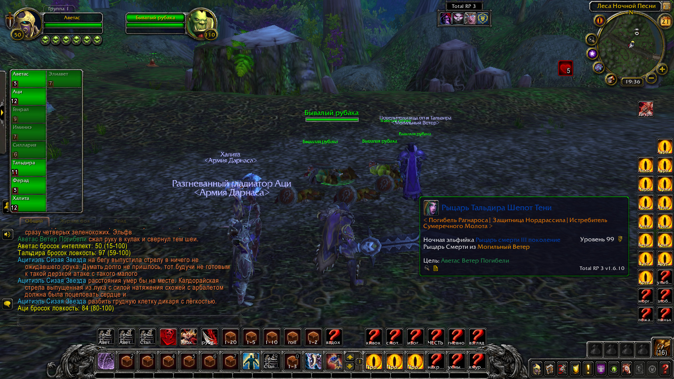 Придя в Рощу, эльфы начали осматривать все, что только было на наличие лунных камней. Кто-то все же сумел раздобыть искомое, кто-то — нашел хлам, а кому-то вообще везло и он находил отсеченные руки и различные останки. От группы отделилась Иминиэ, она осталась на пригорке следить за окружением, заодно выслав собственную сову для наблюдения. И птица принесла весть: прямо к роще приближался отряд из ловчих Смерти под руководством одного темного следопыта. Дети звезд уже хотели было сбежать с помощью гиппогрифов, но те, кого они ждали, уже стояли у входа, держа в заложниках пленного часового. Еще один тяжелый моральный выбор для всех: сбежать или помочь. И само собой — помочь. Не в правилах ночных эльфов было сбегать от боя, бросая на произвол судьбы собственных родичей.