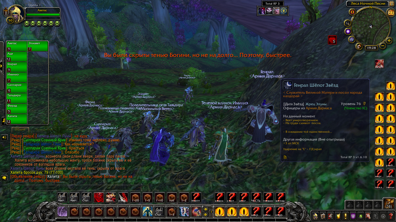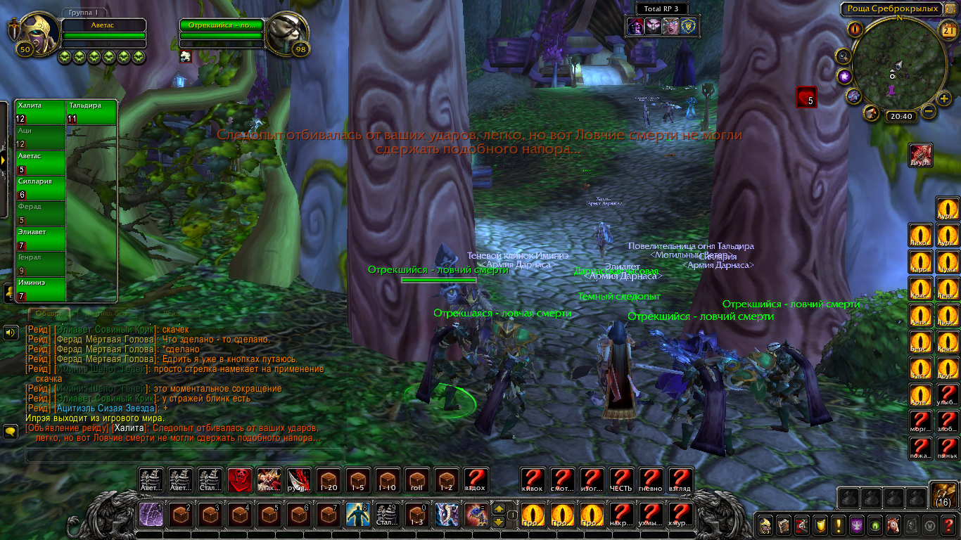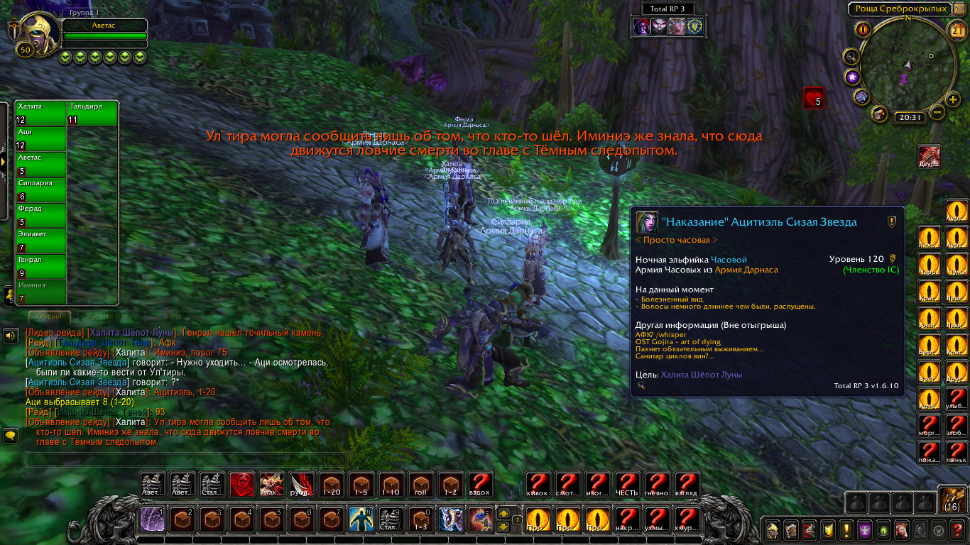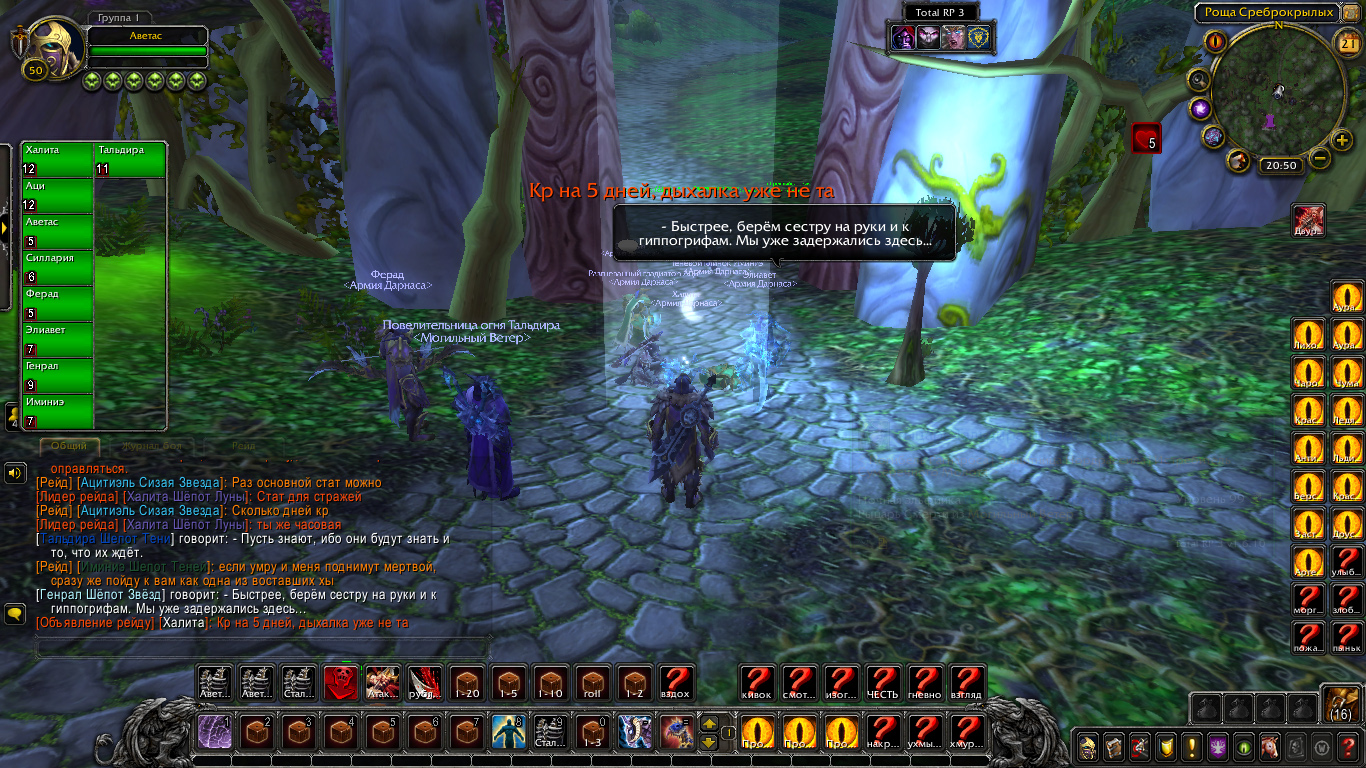 — Небольшой отряд Армии Дарнаса смог добраться до рощи Среброкрылых, найти там нужные им лунные камни, с которыми сестринство Элуны может провести ритуалы для вызова солнечного затмения.