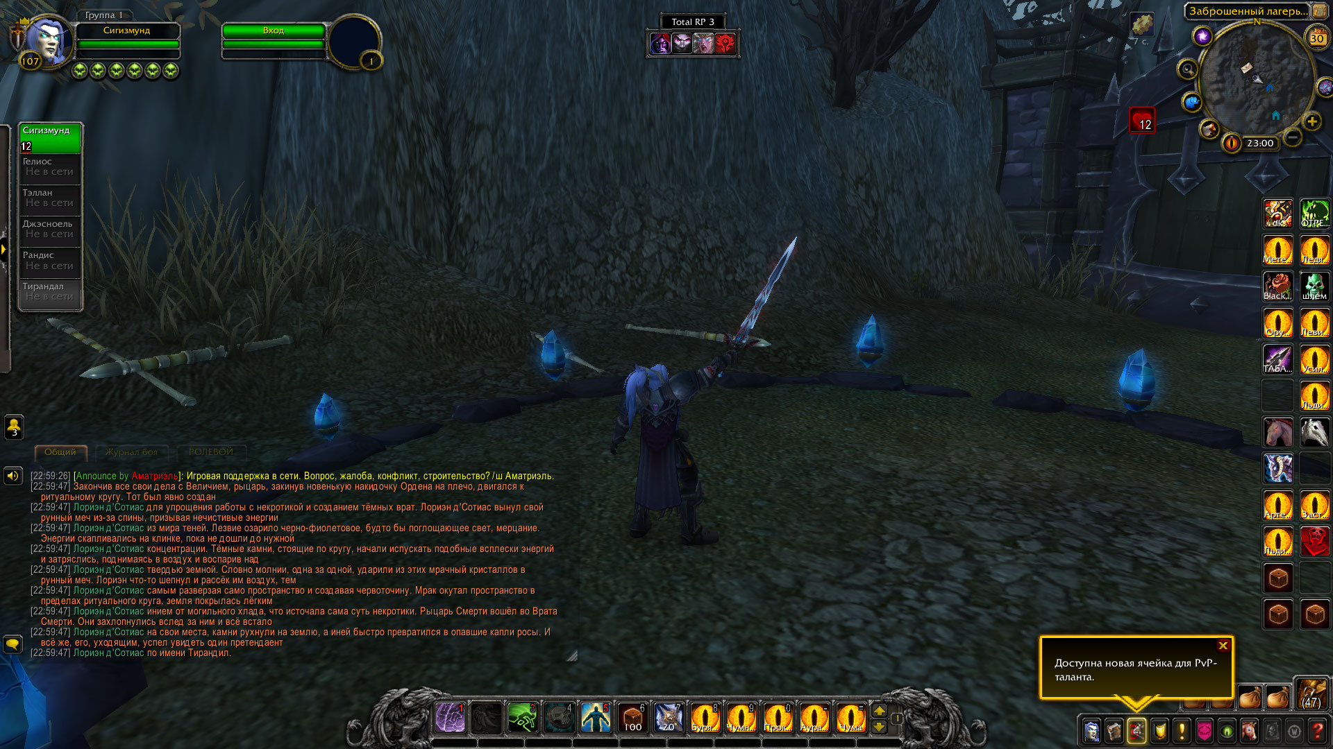 Насущные вопросы с Величием, так или иначе, либо были решены, либо зашли в тупик обоюдного непонимания и требовали слишком много времени для рассуждений и обдумывания. А этого драгоценного ресурса в пылу войны у Лориэна категорически не хватало. Закинув накидку на плечо, он шёл к ритуальному кругу, который был выстроен для упращения работы с некротикой и создания тёмных врат. Рыцарь выхватил свой меч и призвал силы тёмных земель. Клинок охватило черно-фиолетовое мерцание.