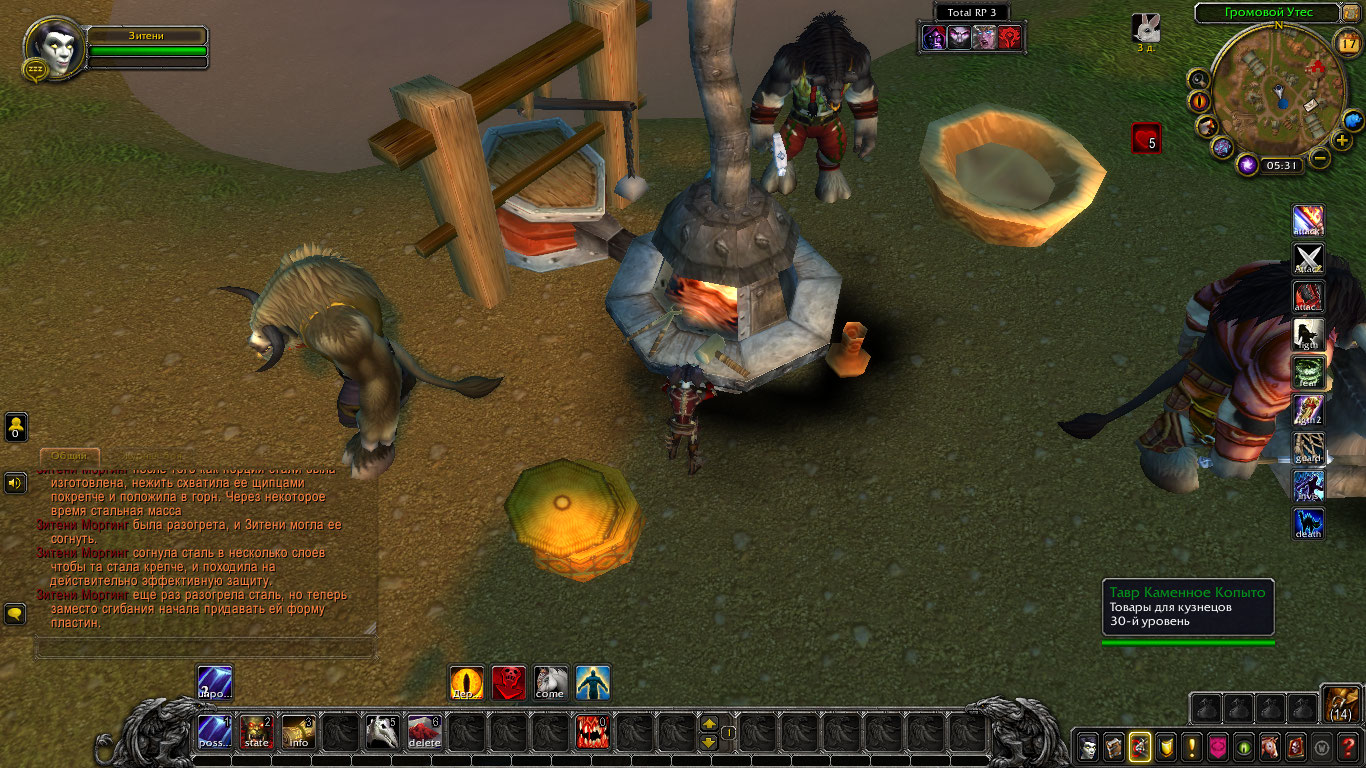 Первым делом она подалась именно к кузнецу. Они с ним были давними знакомыми, и таурен без труда узнал нежить. Во многом этому поспособствовали характерные волосы Зитени, заплетенные в два хвостика. Они немного поговорили о прошлом, после чего неживая занялась делом. Она пришла к знакомому кузнецу с конкретной целью: изготовить латный комплект и новое оружие. Недавняя потасовка с войсками Альянса заметно обогатила Мулгор железным ломом. Доспехи павших солдат Альянса пошли в ход, стали неплохим материалом для снаряжения воителей Орды.