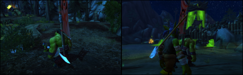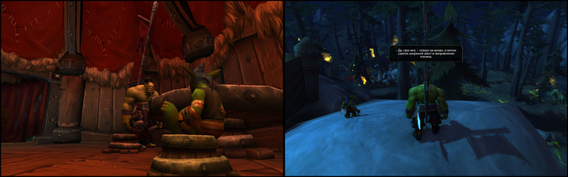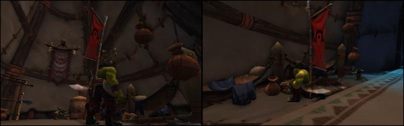 Деревня рогатых завоевателей встретила их не тишиной, не грохотом — но гнетущим треском оставленного поля боя, пропитанного зеленой отравой и кровью героев, будь она багровой и живой или черной и гнилой. Следов сражения однако, почти не осталось и лишь несколько домов уцелели хотя бы в общем смысле, в них орк и повел гоблина. Мешки со случайными частями зверей, мелкими украшениями из перьев и самоцветов были разбросаны по охотничьему дому, определенно нужные тауренам орочьи сапоги и небольшой набор копий для добычи шкур, который успел принести бывшему хозяину пару рулонов добычи. Рассказывая о своих взглядах на жизнь и ремесло, орк методично собирал пригодные для использования пожитки и складывал у входа в мешки, а гоблин помогал в этом деле, попутно раздумывая на тему прохладного ветра. Связку копий и достаточно большие рулоны шкур, Ранджи скинул вниз с утеса, чтобы подобрать позже на кодо, а мелкие украшения с гамаками и подушками были скручены в плотные связки и спрятаны в мешки, оставляя дом почти пустым. Риск же пока шел налегке, но в обновке — чтобы не мерзнуть в будущем, гоблин взял небольшую шкуру и проделал в ней отверстие под голову тауренским копьем, после чего накинул поверх футболки и по совету орка добавил тауренских украшений поверх, чтобы выглядеть не хуже любого друида даже в таком простом облачении.