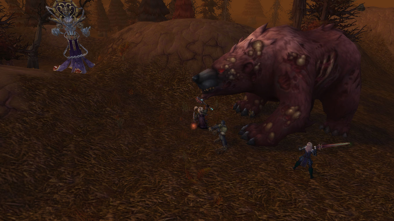 • Рыцари смерти, упырь, и скелеты одолели огромного мертвого медведя.