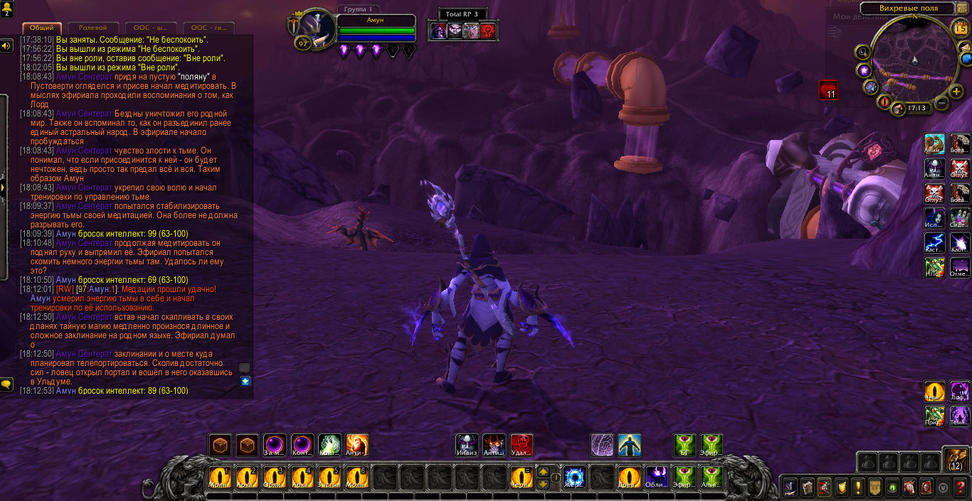 И вот Амун Сентерат выйдя на полянку в Пустоверти сел и начал медитацию. Он вспоминал все плохие моменты его жизни связанные со тьмой. Уничтожение родного мира, конфликты в народе эфириалов и много других… Таким образом он усиливал свою ненависть тьме дабы той было сложнее его подчинить своей воли. Помогало ли? Посмотрим в будущем… Также с помощью всё тех же медитаций он стабилизировал тьму в своём теле и начал учиться контролировать её. Пока плохо, но в будущем всё будет лучше.