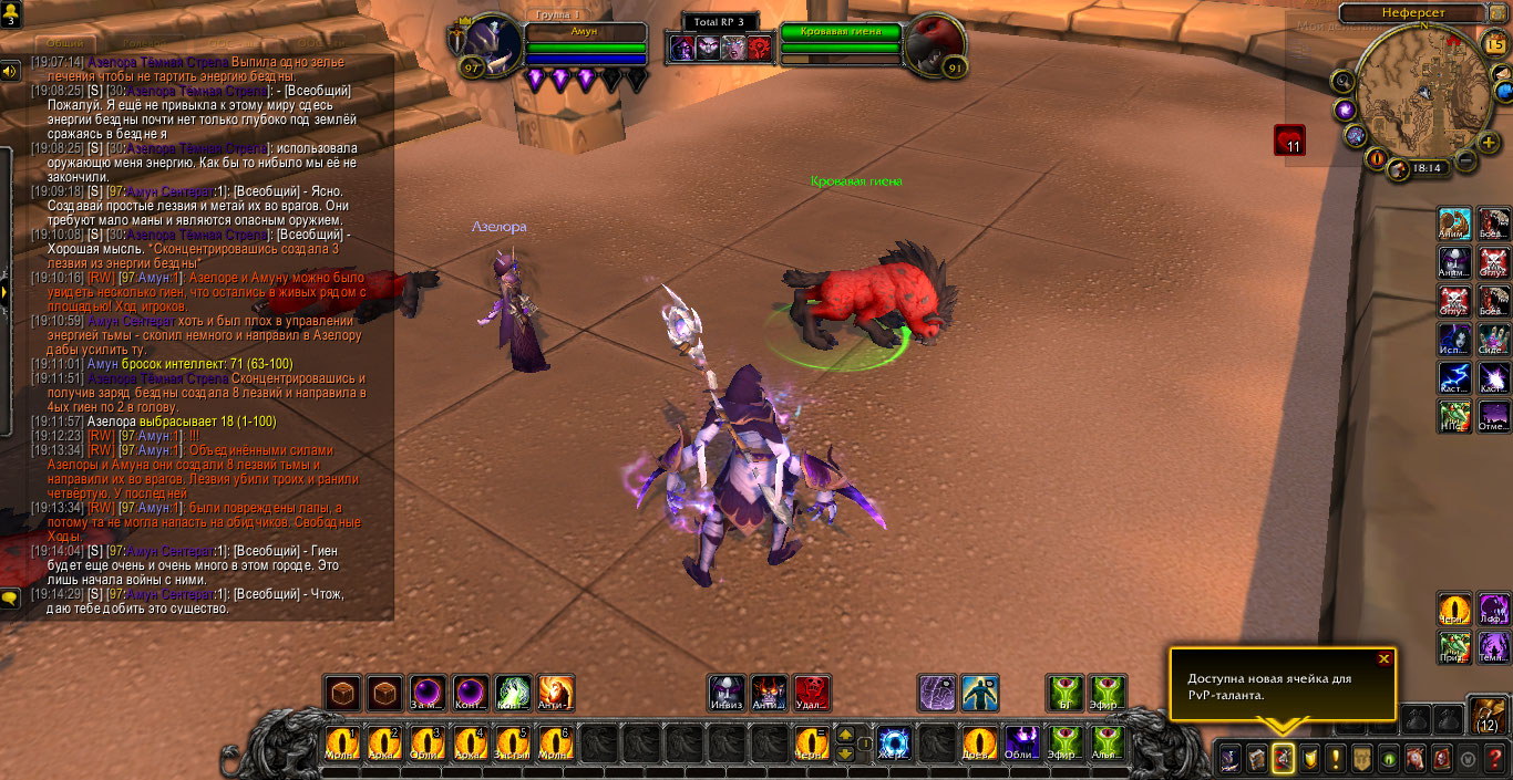 Общими усилиями они добили оставшихся гиен на площади, а после открыли портал и перенесли Астральный Лагерь из гор Кул-Тираса. Амун отдал приказ своим магическим слугам, что были похожи на эфириалов охранять лагерь от гиен. На этом и закончилось начало отчищение города Неферсета!