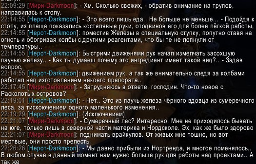 Нерот же имел чудовищный опыт в алхимии, но все его работы были связаны с мертвецами, от чего в нём развивалась скука… Но во время становления некромантом Чёрной Розы, а после и Культа Проклятых его интерес привлёк Пауки обитающие на территории сумеречного леса… И над которыми он работает в данное время… К чему мы и вернёмся..