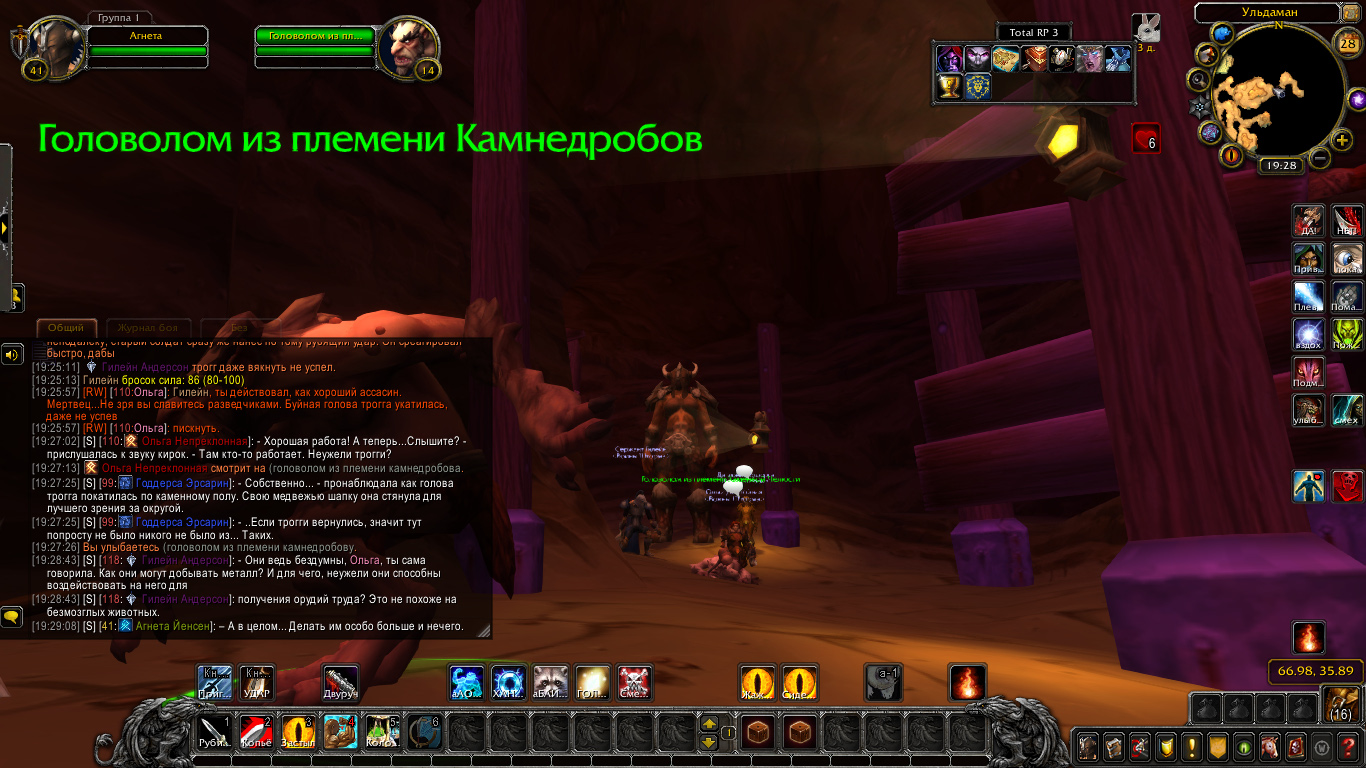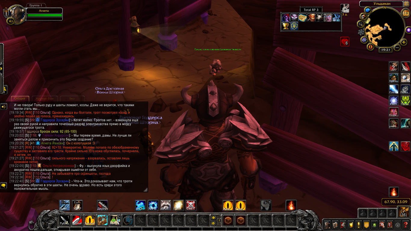 После короткой беседы у входа в комплекс собралась маленькая компания, и именно им упало бремя разведать пещеру да в случае чего уничтожить гостей нежеланных. Войдя же внутрь они могли почувствовать действительно гнетущую тишину… Но! Но спустя минут 5 с момента как Воины Штормы пересекли границу улицы и пещеры… Им на глаза вдалеке попалось странное горбатое существо… Кто-то сперва подумал что это более горбатая версия Дворфа… Но нет! Сией тварью оказался что ни на есть самый настоящий Трогг! Эти проклятые разорители и раньше досаждали Ульдаману своим присутствием, и видимо они посчитали данное место своим домом… Что нужно исправлять.