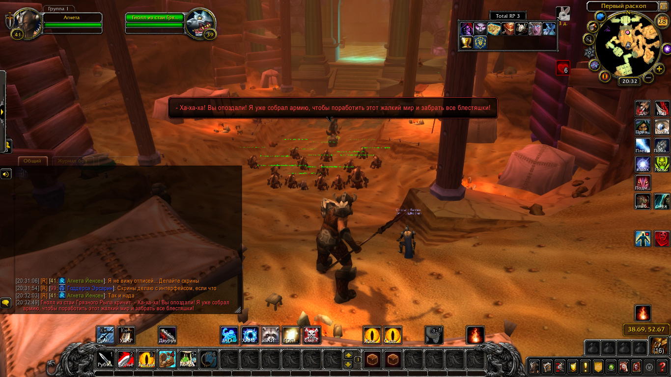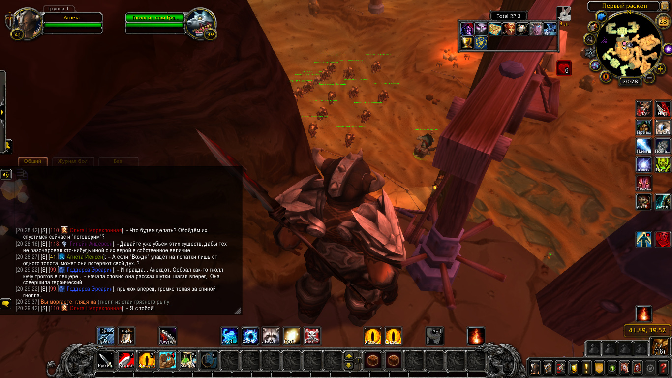 Приблизившись к тому самому входу Воины Шторма сразу-же смогли услышать голоса неизвестных существ, и один… Один громкий и хрипящий голосок. И вот подобрались избранники Одина к выступу… А снизу их ждала картина, которую и в Анекдотах не услышишь! Гнолл… Гнолл стоит на коробке, а пред ним армия Троггов! По речи было понятно что горбатый из семейства свинтусов-собачек возжелает взять власть над живыми существами вроде людей, и конечно-же с помощью воодушевлённых Троггов тот и планировал совершить сие деяние.
