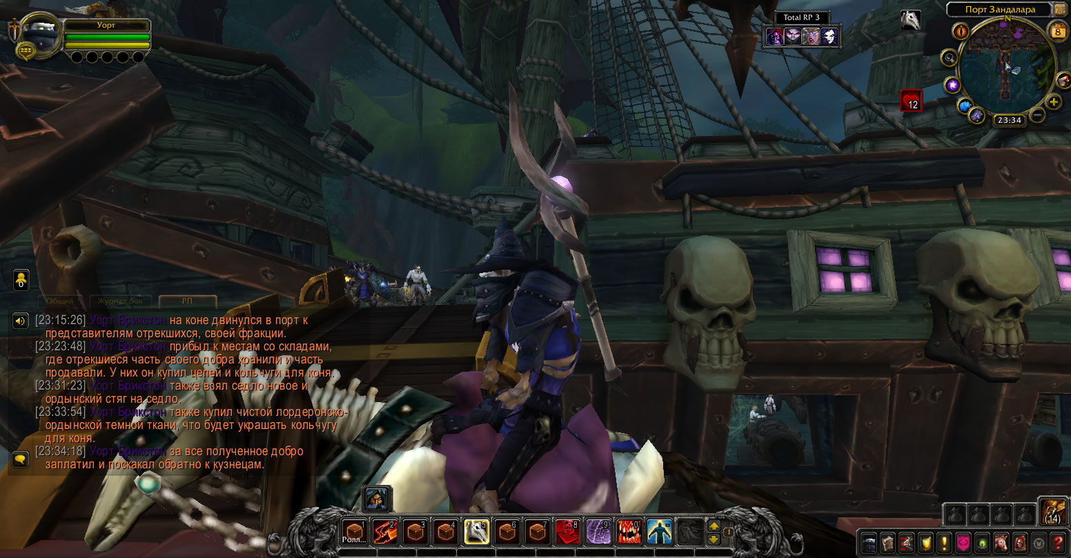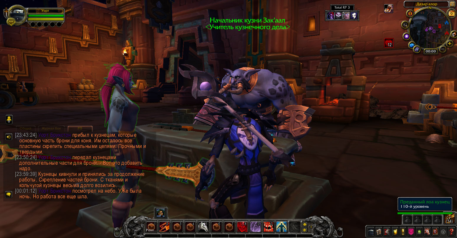 Наступил новый день в Дазар'Алоре. Уорт помнил, что он должен был как-то подсобить кузнецам, чтобы работа по изготовления брони для его коня закончилась быстрее. Для этого он со своих покоев двинулся к интенданту отрекшихся за тем, что могли делать и иметь при себя только представители сего народа: седло, стяг ордынский, кольчугу, ткань большую темную и цепи специальные. Со всем полученным добром, за которое были заплачены деньги, Уорт вернулся к мастерам кузнечного дела на террасу ремесленников.