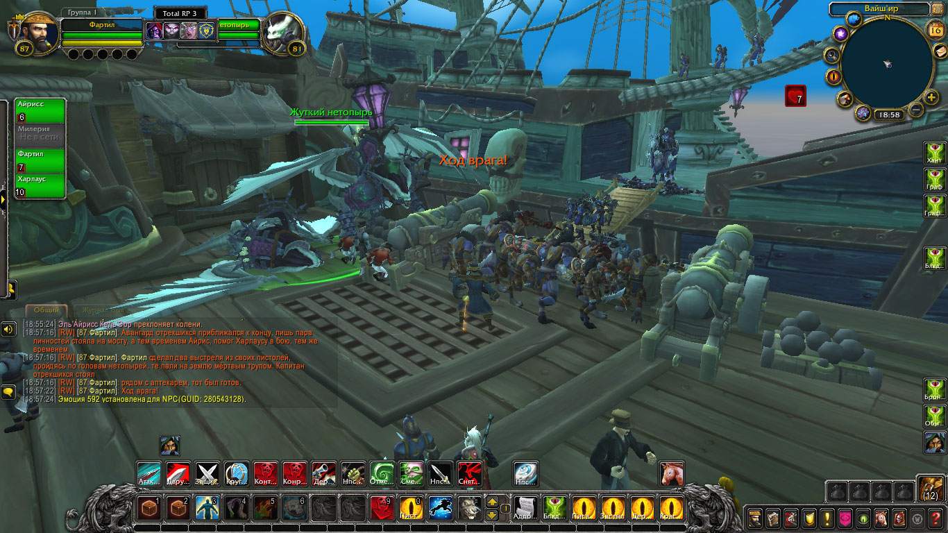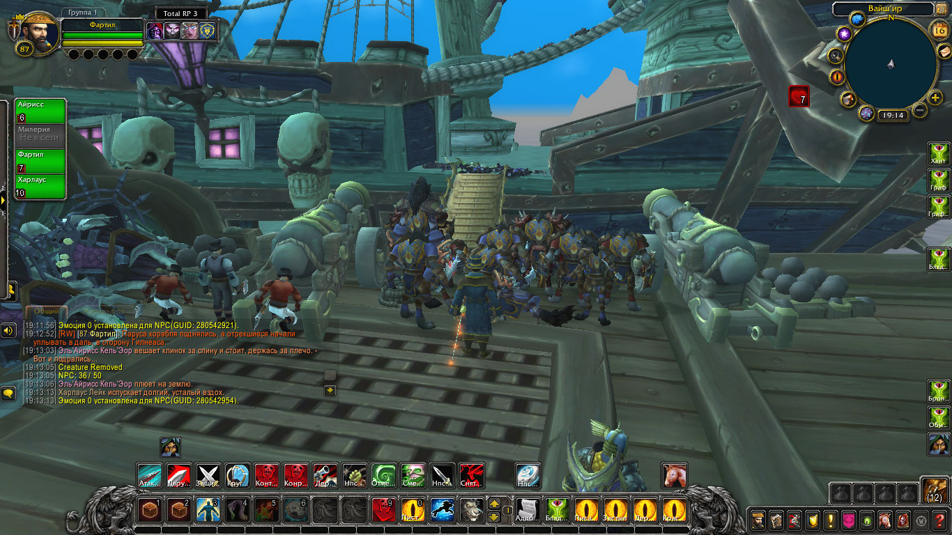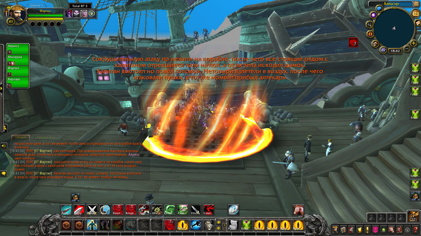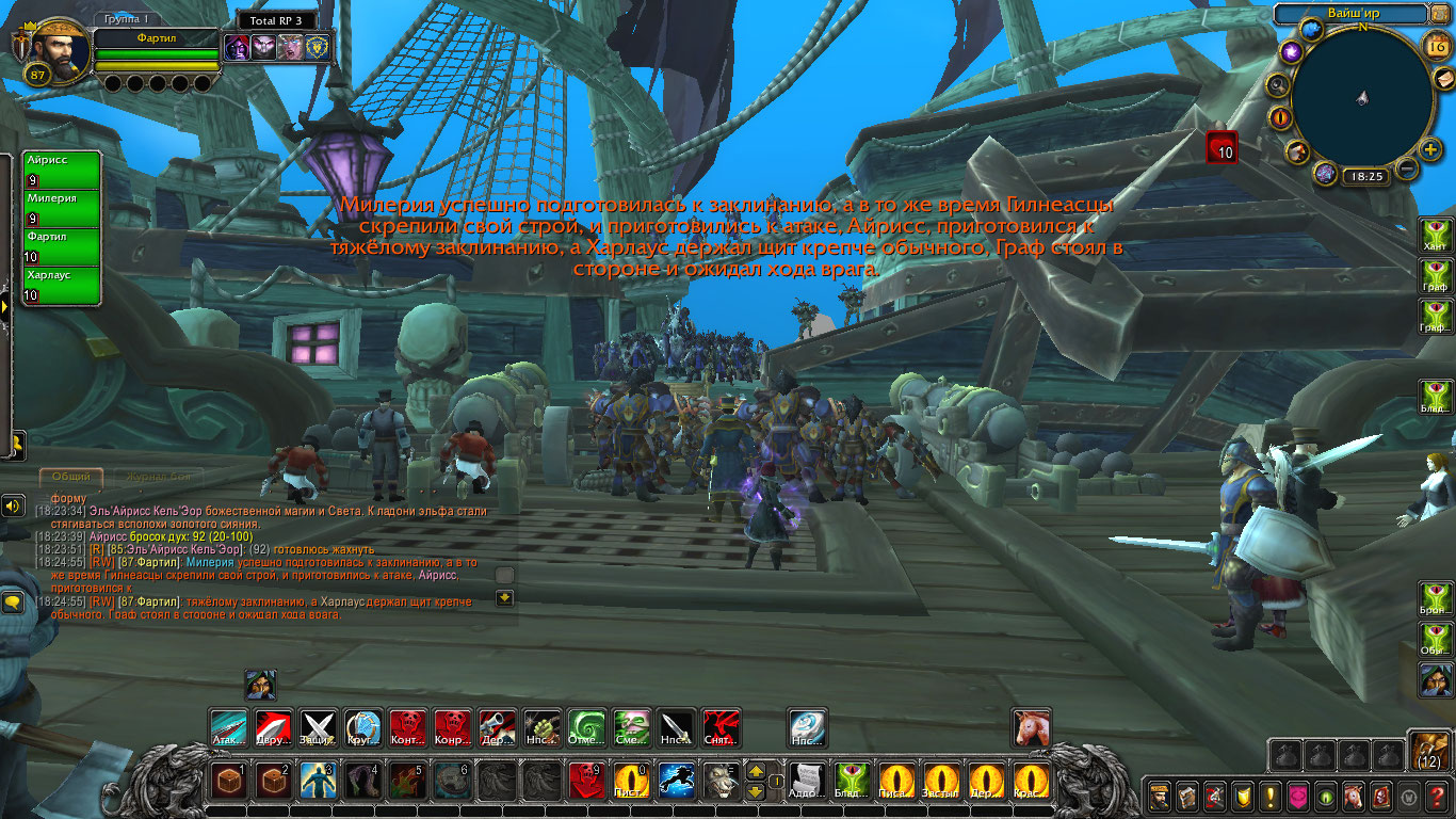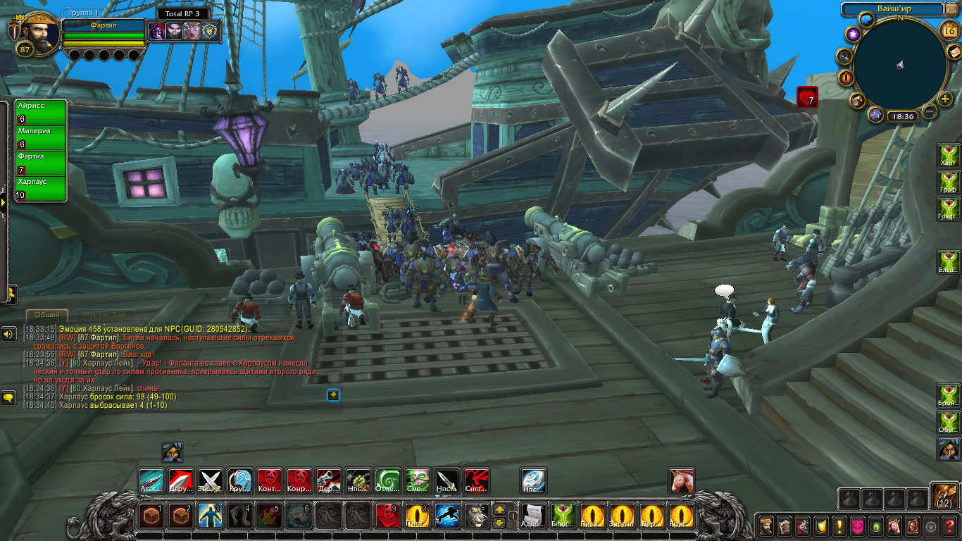 Отрекшиеся корабль которых стоял километре от судна гилнеаса, так же бросил якорь, принявшись готовится к бою. Прошло порядком десяти минут, после чего враг начал своё движение, ловко корабль отрекшихся не давал развернутся гилнеасцам в свою сторону, промах за промахом ядра начали кончатся, а враг тем временем был впритык к кораблю.