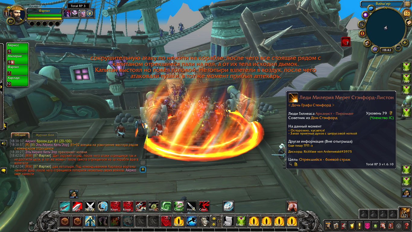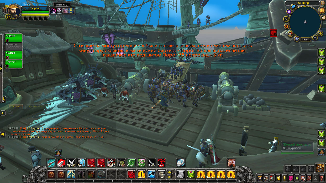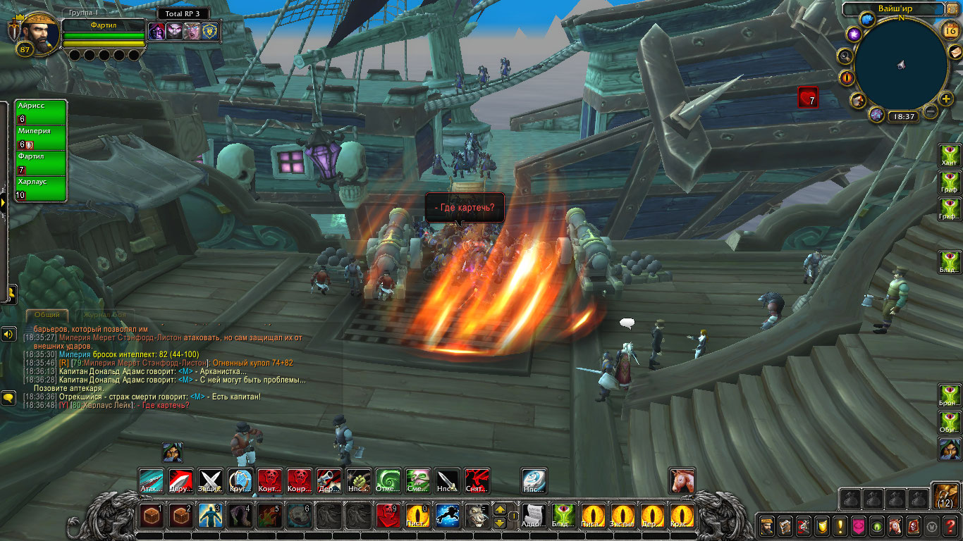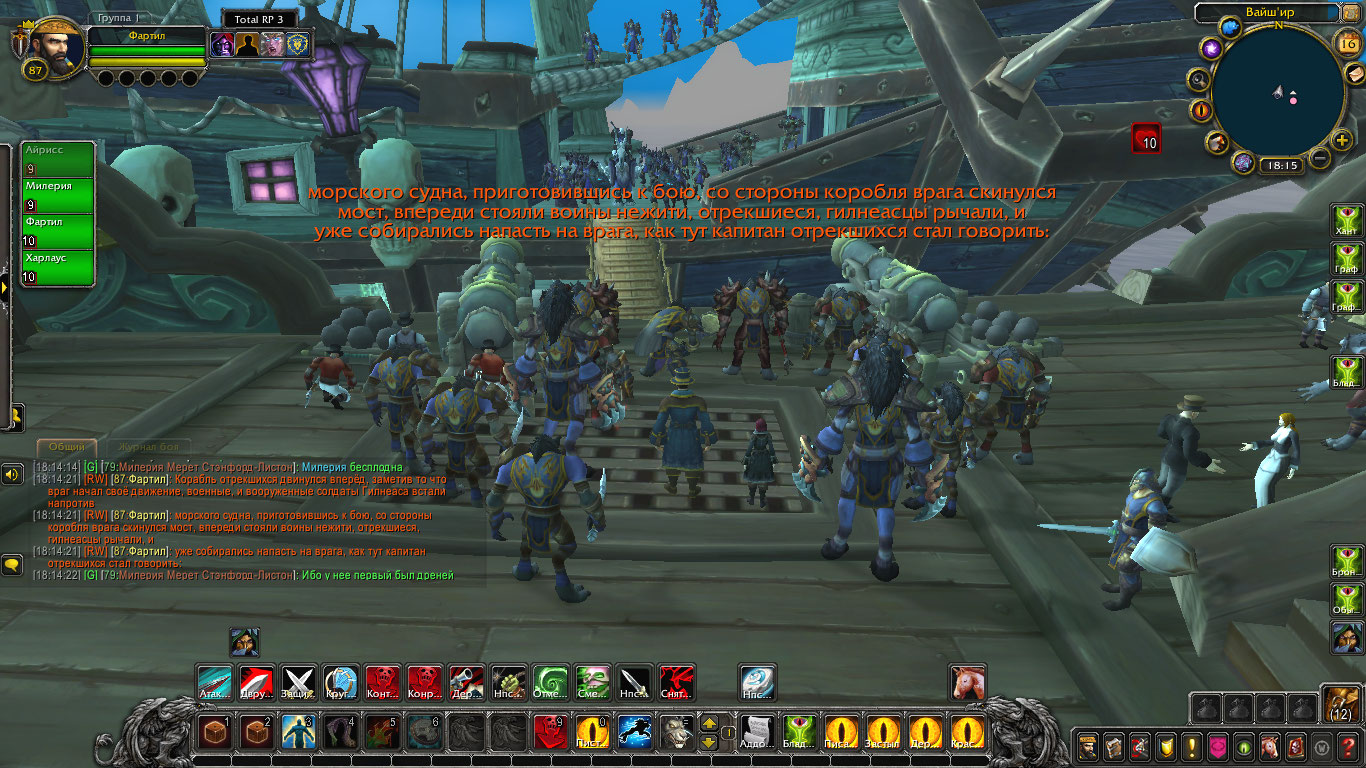 Отрекшиеся корабль которых стоял километре от судна гилнеаса, так же бросил якорь, принявшись готовится к бою. Прошло порядком десяти минут, после чего враг начал своё движение, ловко корабль отрекшихся не давал развернутся гилнеасцам в свою сторону, промах за промахом ядра начали кончатся, а враг тем временем был впритык к кораблю.
