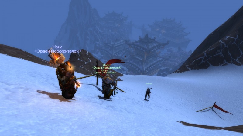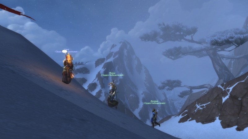 — Разумеется, императора укутывали тёплый мех и одежды, — через, казалось бы, вечность добавила Нана. Тут же цзинь-юю, женщине и дренейке стало куда комфортнее, так как каждый вообразил тепло. И тут, следуя за рассказчицей, каждый начал свой подъём по крутым склонам вершины Кунь-лай.