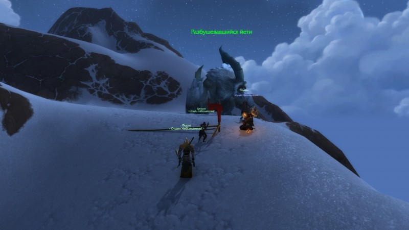 — На самом деле, на таких холодных и высоких горах часто можно встретить йети или виндиго, — сказала рассказчица спустя какой-то промежуток времени. Но стоило-ли ей это говорить...? Пандаренка рассмеялась, когда в лицо ударила метель. — Порой такой холод называют йеттинским моро~… — не успела договорить Нана, как над ней нависла ужасающая тень. Вскоре, воображение каждого слушателя уже воссоздало кошмарный образ гигантского снежного хищника.