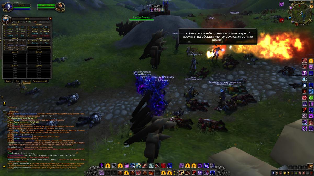 Тут во всей красе себя проявили маги Серебряного Союза и жрецы из Анклава Пустоты. Манипулируя энергиями разного вида, они обращали в бегство неустойчивых к подобному и убивали тех, кто продолжал наступать. Однако, в этот момент враг зашел с тыла. Отряд отъявленных убийц и скрытней подло напал на спины союзников. И сим хитрым шагом Орда объявила о заявке на победу. Но боевой дух обороняющихся не падал ни в коем разе, наоборот они с каждой минутой все более уверенно давали отпор. А все потому, что знали о союзном подкреплении.