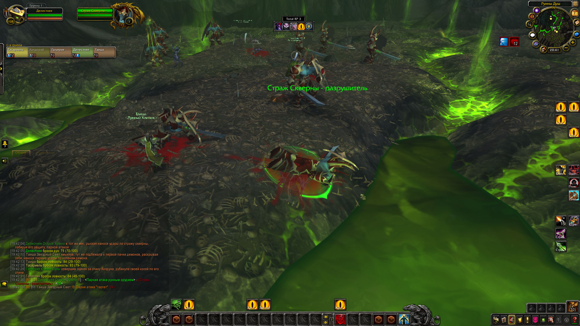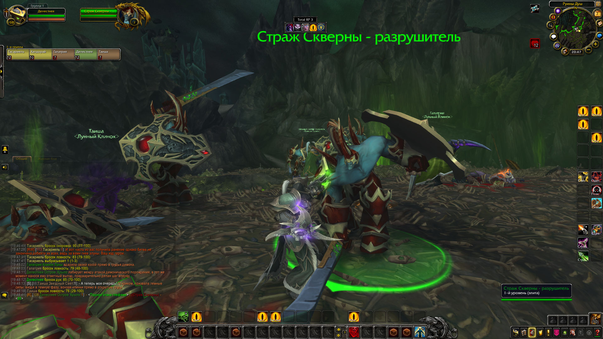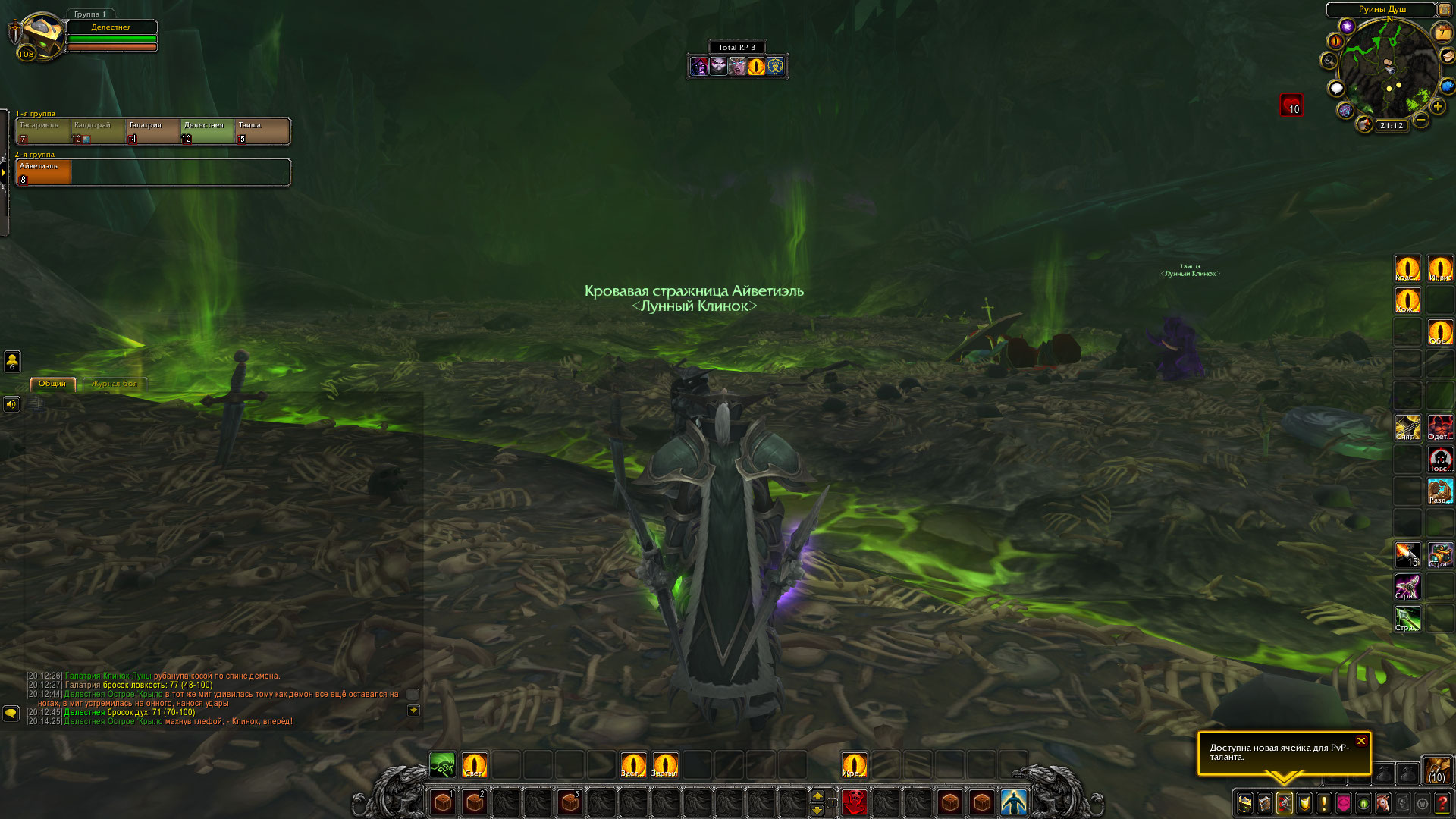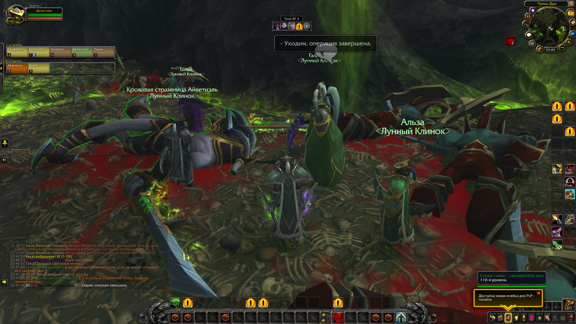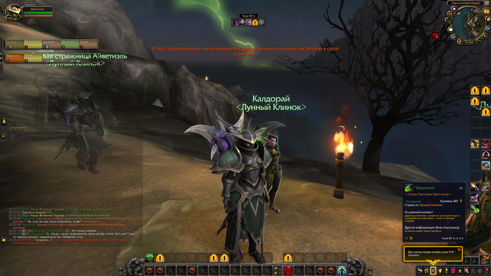 «Призыватели убиты, порталы не поставлены а армия демонов на острове, оказалась полностью отрезана от возможных подкреплений, и в случае крупных стычек демонам придется полагаться только на свои собственные силы расположенные на острове. Так же Делестнея забрала голову Демона-Воителя. Калдорай срисовала руну призыва.»