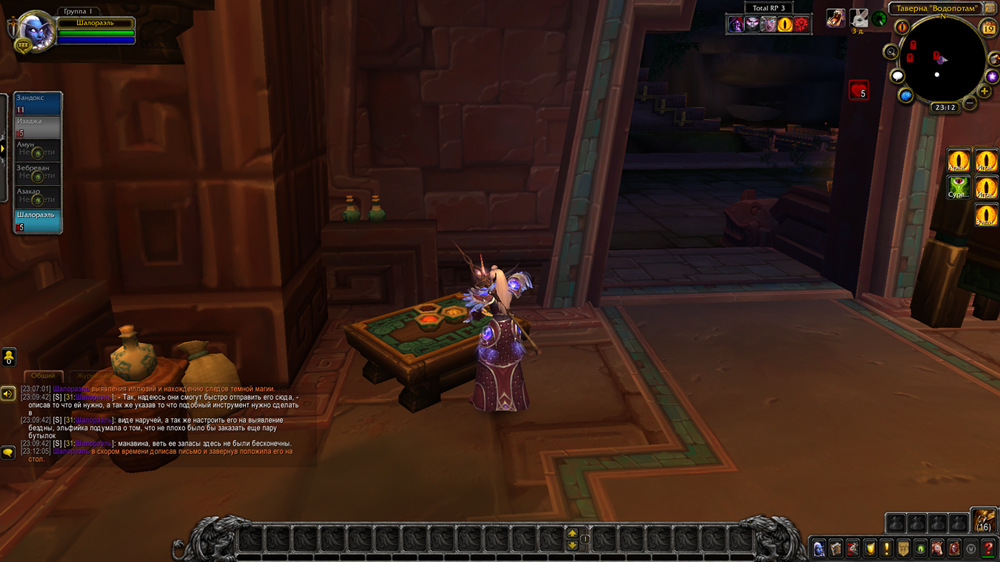 1) Шалораэль успешно отправила весточку домой с небольшой просьбой выслать ей наручи со встроенным инструментом, с указанными в письме свойствами, и пару бутылочек мановина. На данный момент свойства наручей не изучены, поэтому их следует позже изучить (через отчет).