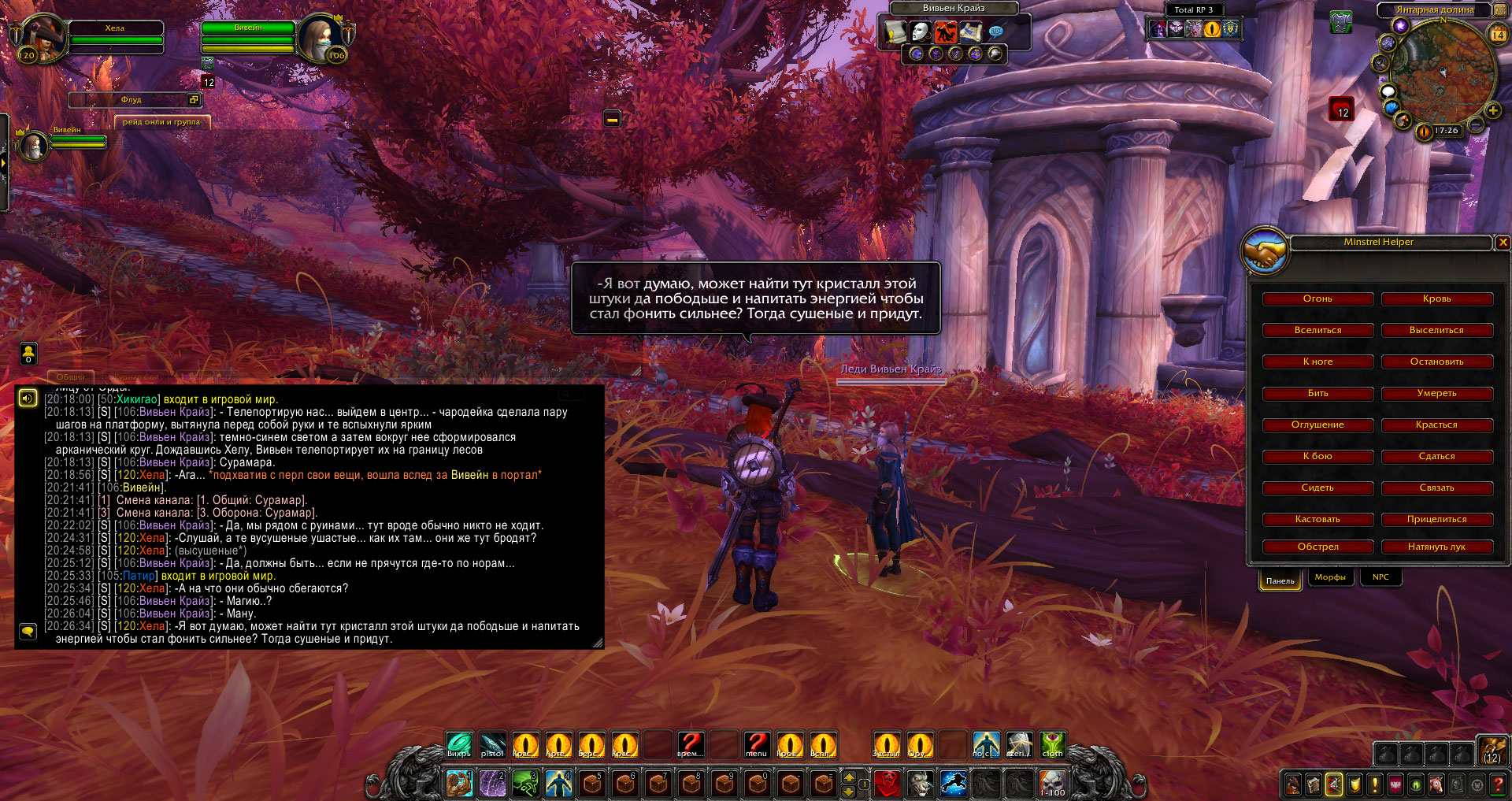 День был достаточно теплым, а небо безоблачным. Такое редко бывало на море, но в Сурамаре всегда был приятный климат. Две девушки шли по красивому лесу в поисках достаточно редкого реагента. Хела собиралась научиться черпать арканическую силу уже из живых существ, а Вивейн вызвалась помочь. Теперь же они искали иссохших, которые моги быть только у скопления манакристаллов, которые появлялись иногда то тут, то там.
