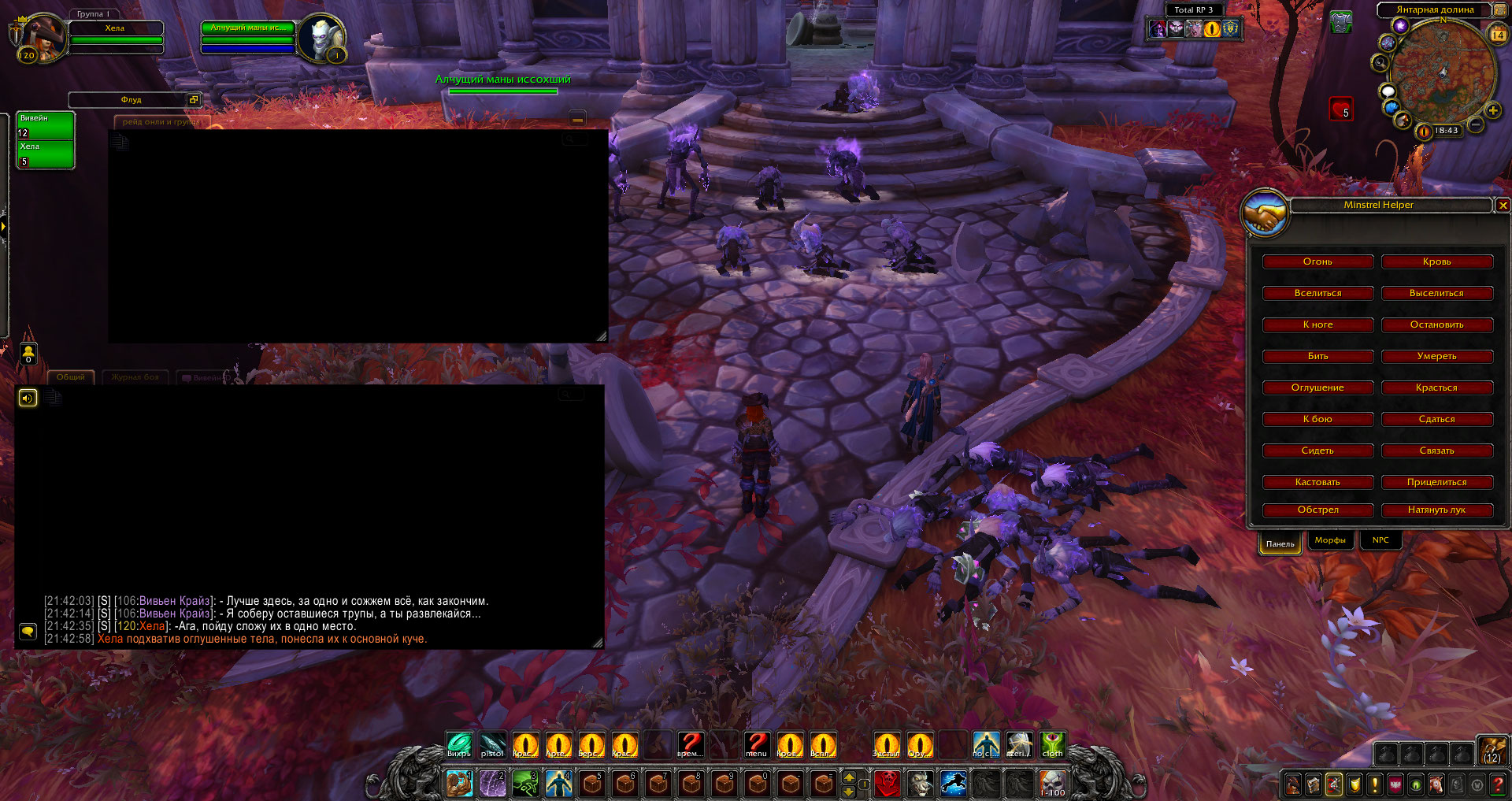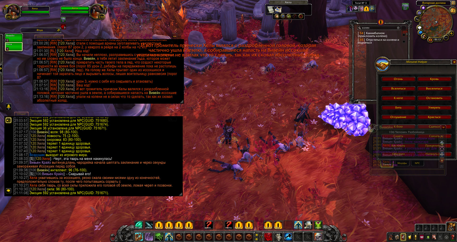 Хоть они были не так сильны по отдельности, сейчас это была орда, которая могла смести небольшой отряд солдат. Только сейчас Вивейн и Хела поняли, что немного перестарались, потому начали сражаться всерьез, ряд за рядом уничтожая набегавших прокаженных. Прорвавшись к истощенным магам, они захватили их чтобы те остались живы. Воительница с помощью нескольких сильных ударов смогла оглушить парочку из них, а чародейка мановением руки обратила своих оппонентов в лед.