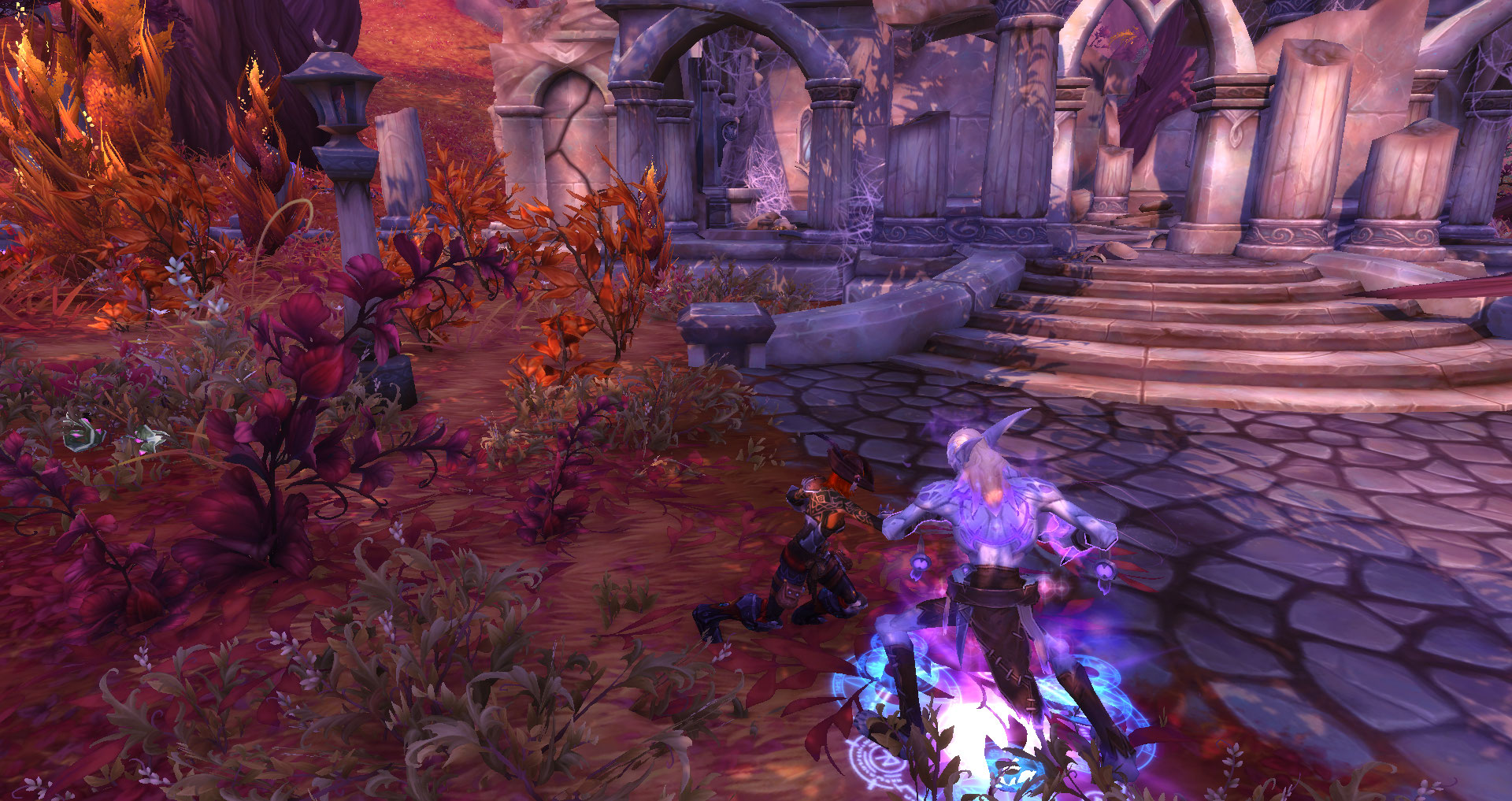 Добравшись до древних руин, они наконец смогли узреть искомое. Целое скопление манакристаллов красиво переливалось близь векового дерева, которое осыпало необычные камни желтыми листьями. Хоть они и были полны манны, нужно было перенаправить энергию, чтобы их фон могли учуять существа за пару миль отсюда. Сконцентрировавшись, они использовали свои силы для реализации задуманного. Но как только девушки затратили больше положенных сил, как вокруг раздался громкий топот.