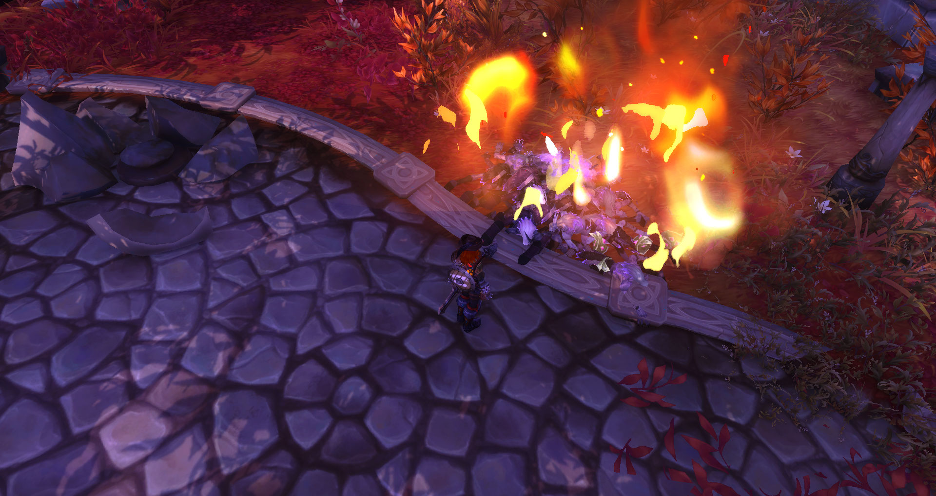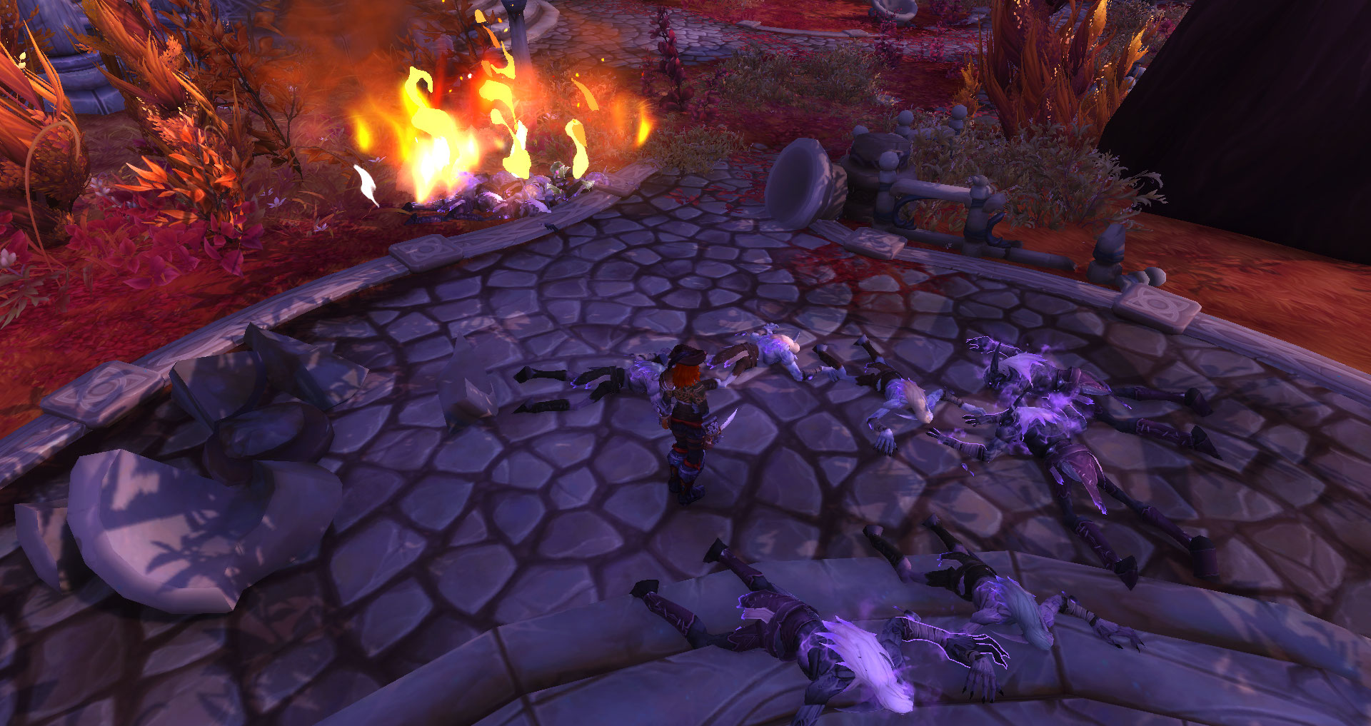 Со стороны руин и из леса начали набегать искривленные и иссушенные тела. Каждый из них представлял из себя плоть, натянутую на скелет. С криками и подобиями слов Иссушенные набросились на незваных гостей, атакуя их паками и камнями. Некоторые стояли вдалеке и вскинув руки, принялись творить заклинания. Опаснее всего были сейчас атаковавшие вблизи, так как их когти могли рвать ткань, плоть и легкую кожаную броню.