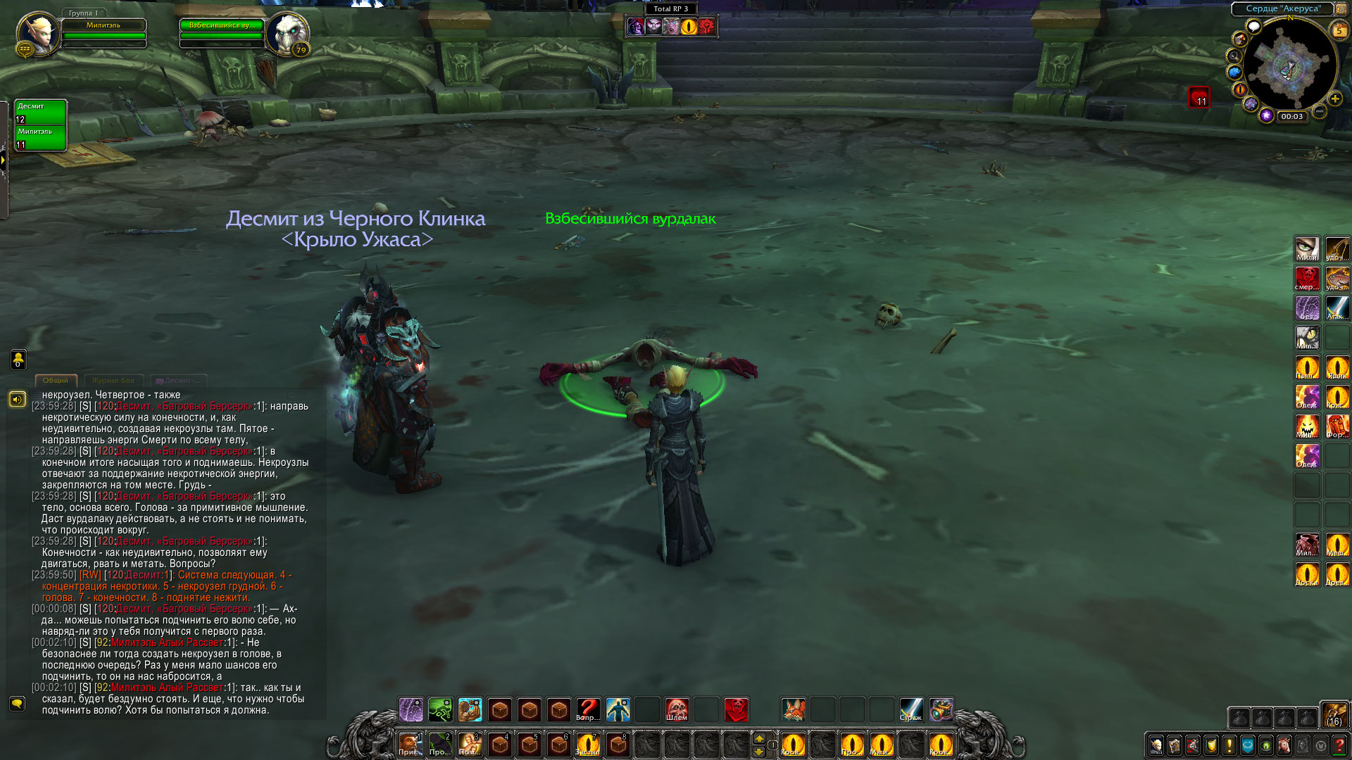 Встав в паре шагов от тела, рыцарь стал объяснять каким образом происходит поднятие мертвеца и что помимо этого, Милитэль придется подчинить того своей воли, в противном случае мертвец непременно захочет полакомиться живой эльфийкой. Узнав все необходимое о некротических узлах, принципу их создания и необходимой последовательности девушка перешла к действиям.