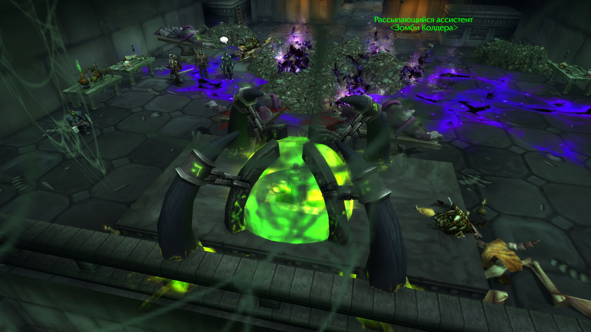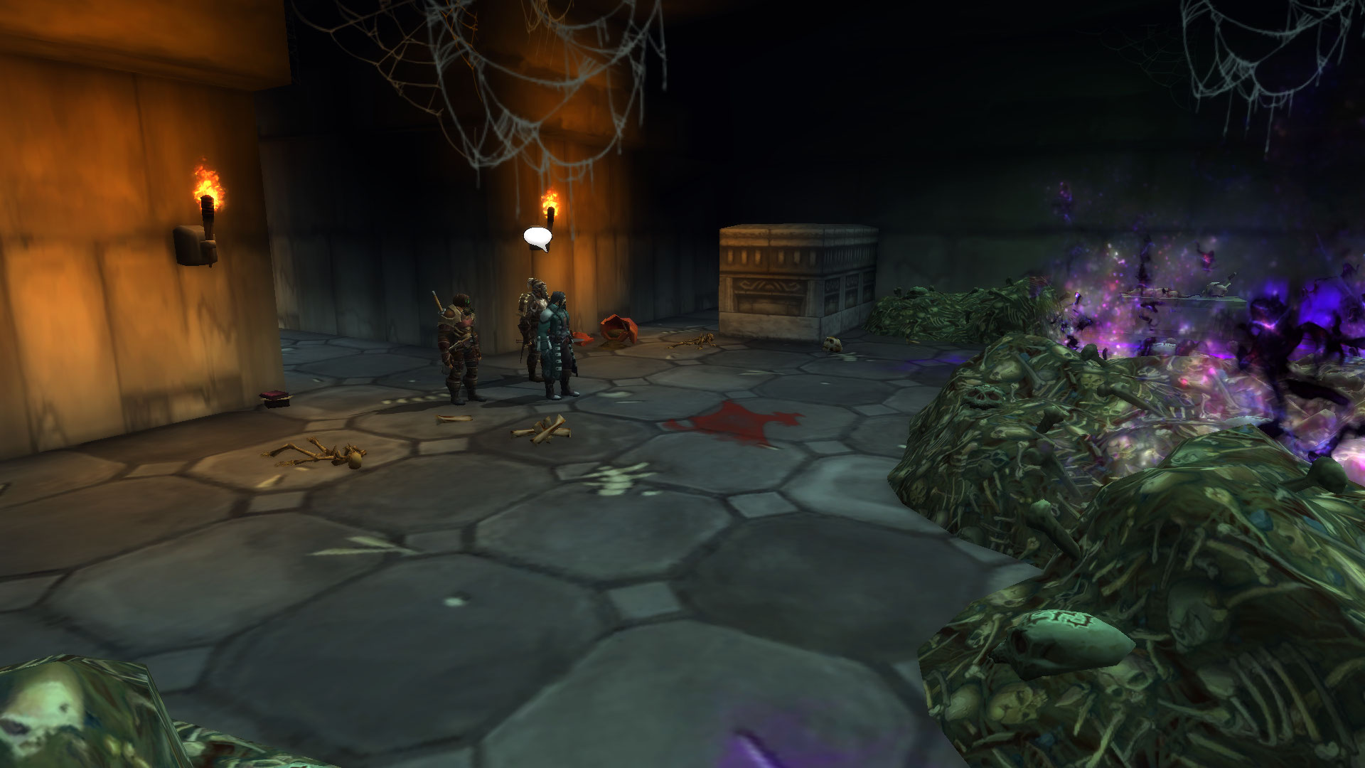 Наконец герои дошли до огромного зала. По всей видимости тут некромантка собирала своих кадавров.