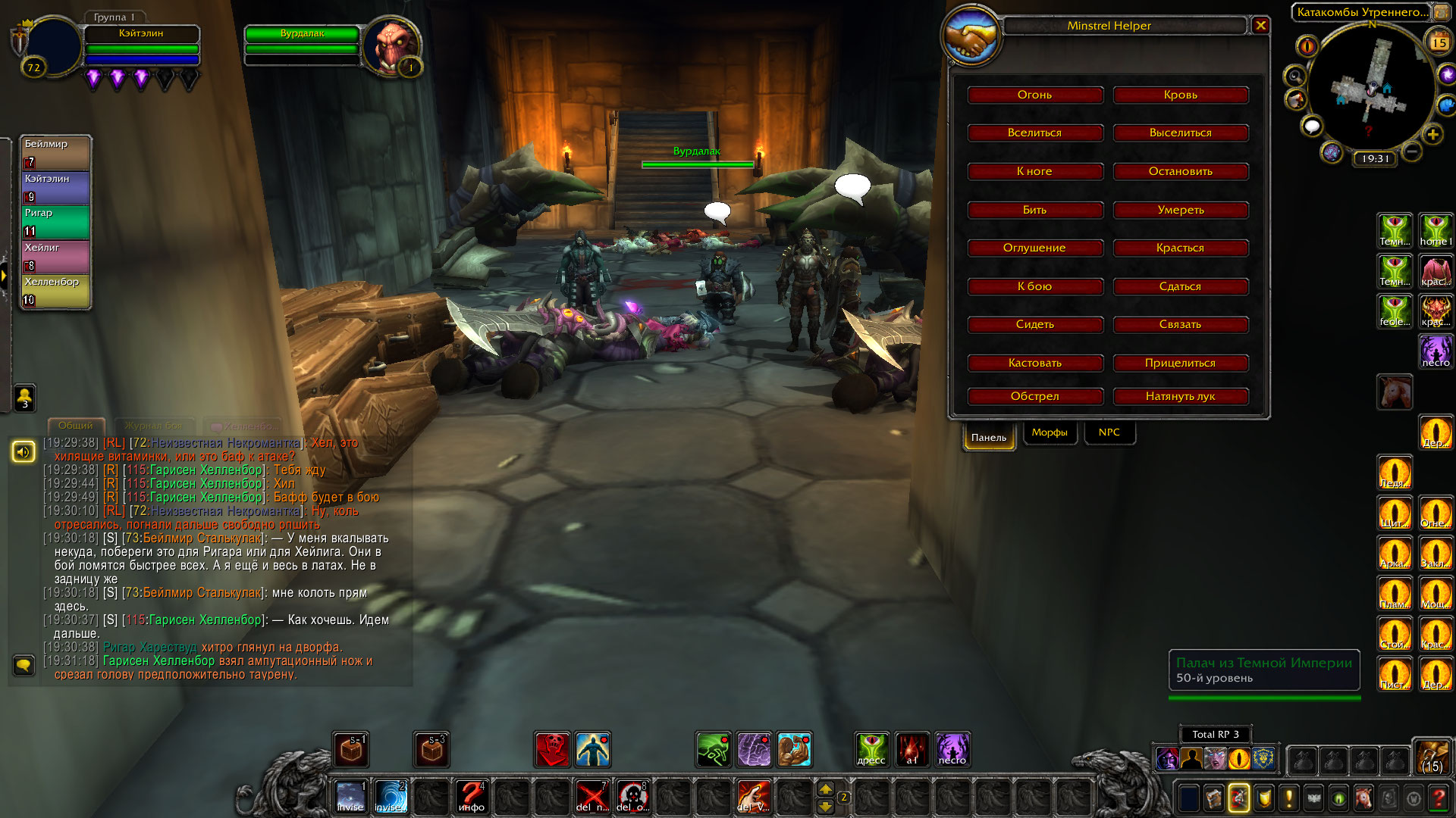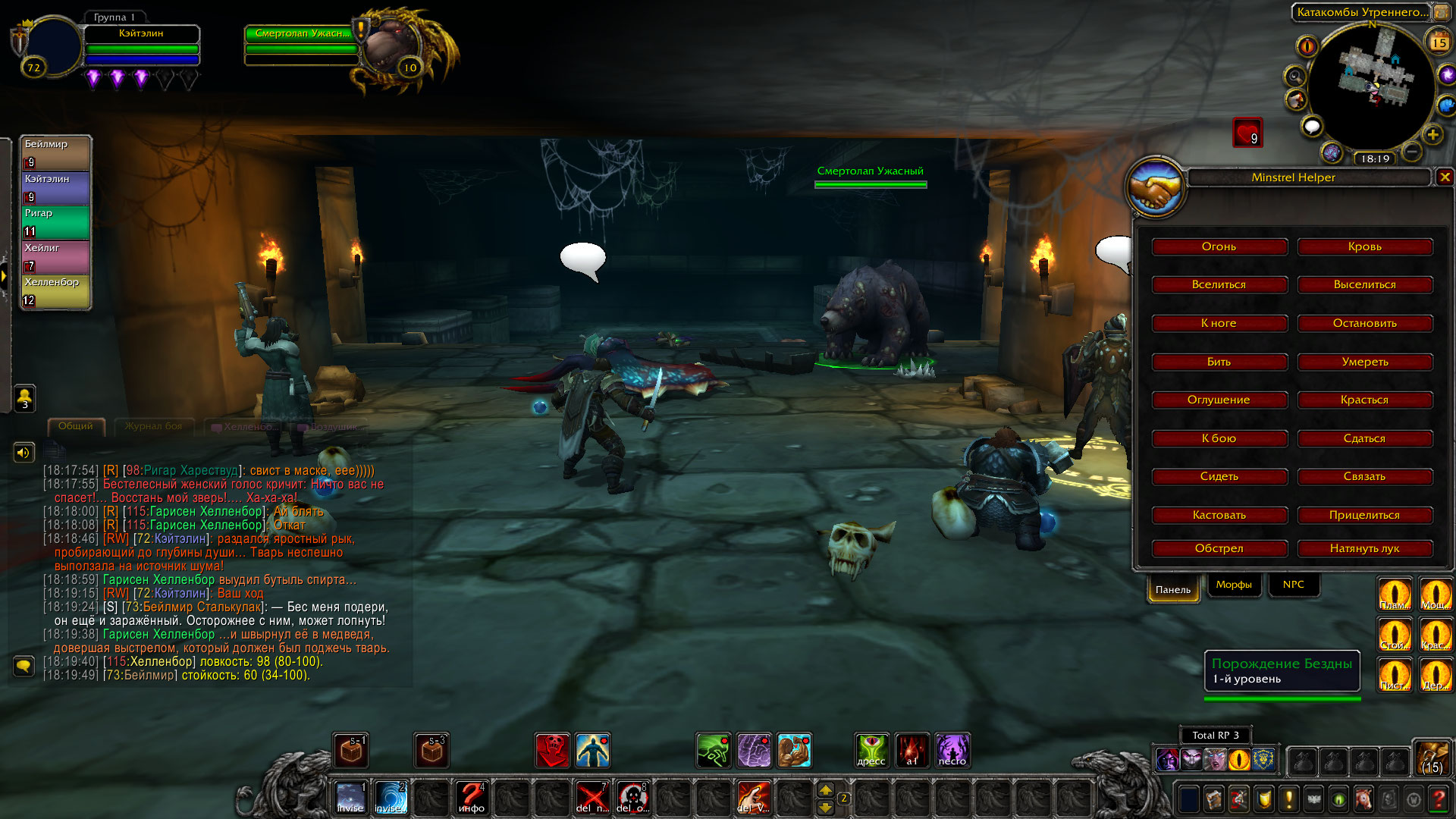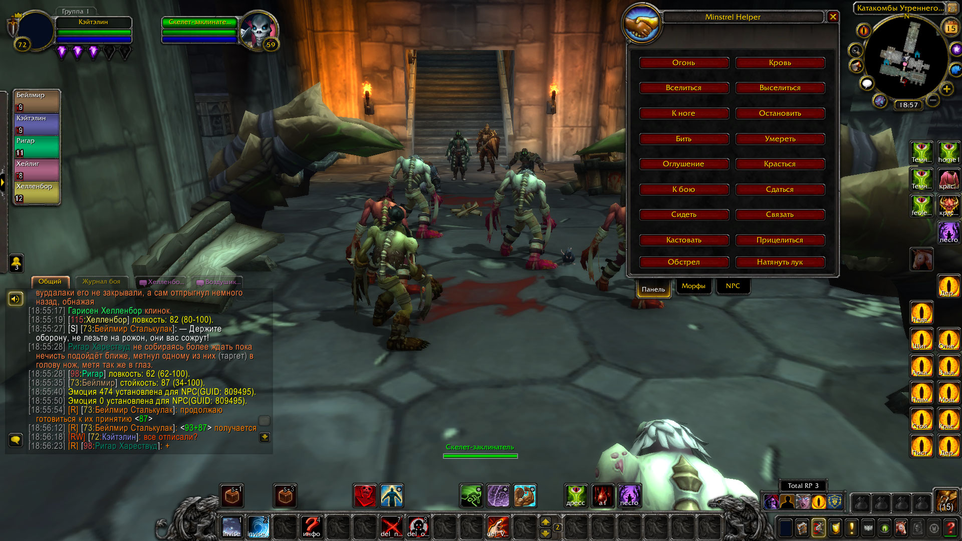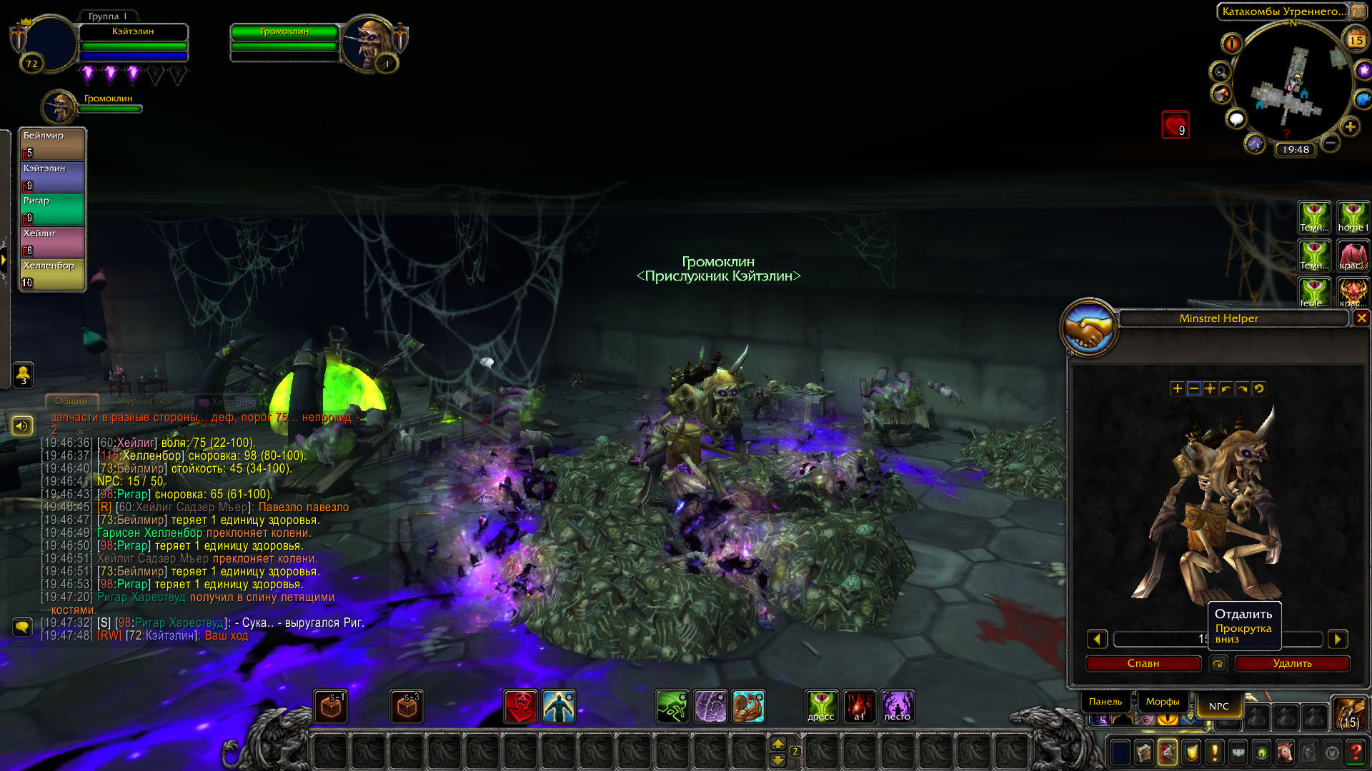 Однако далеко им уйти не пришлось. В другом конце коридора мелькнула женская фигура, а из гробов, что стояли там полезли вурдалаки. Так же, некромантке удалось воскресить мага-скелета, который изрядно усложнял продвижение дозорных по коридору.