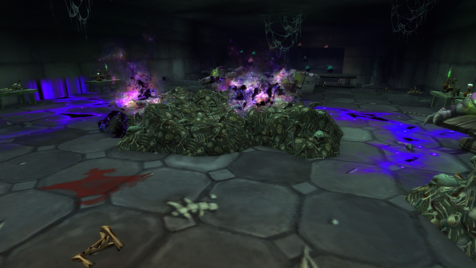 Воспользовавшись затишьем, герои осмотрели зал, и нейтрализовали кадавров, что лежали на операционных столах, обезглавив и испепелив тех светом. Но их действия спровоцировали появление костяного монстра: мерзкое создание, собранное из костей несчастных жертв некроманта, вместо рук у которого косы.