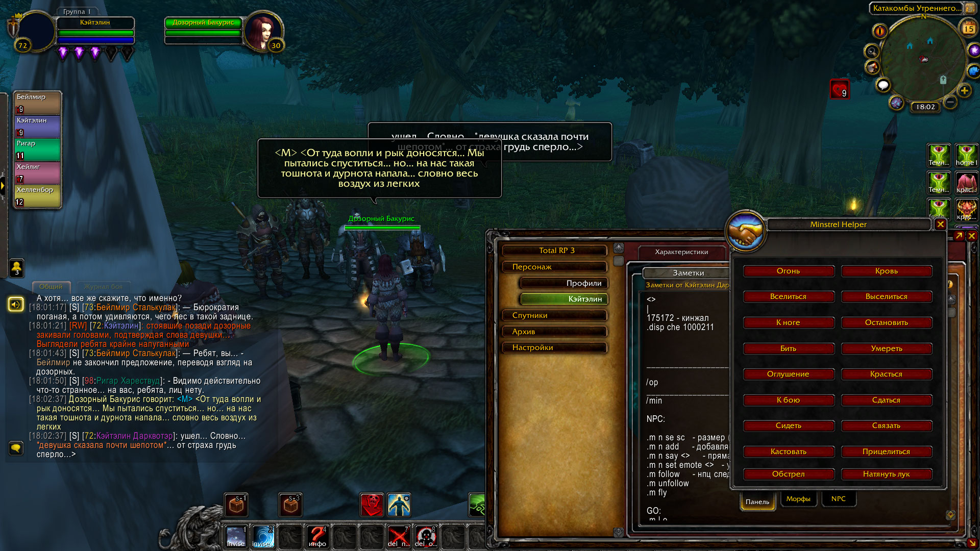 Дойдя до блокпоста у входа в катакомбы, герои переговорили с дозорными, что несли там караул. Дозорная Бакурис сообщила, что в склепе происходят странные и пугающие вещи: слышны голоса и звериный рык. Когда караульные спустились вниз проверить, в чем дело, у них, буквально, сперло дыхание от страха.