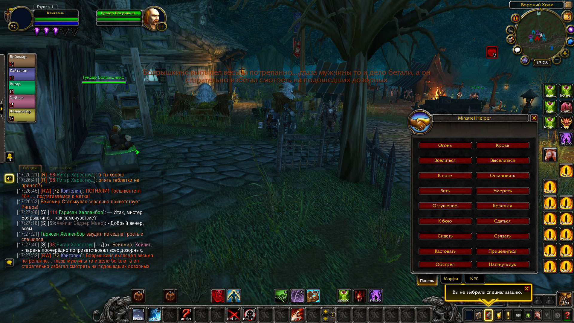 Добравшись до городка, отряд нашел дом Тома Боярышкинса, который как раз сидел у себя на пороге.