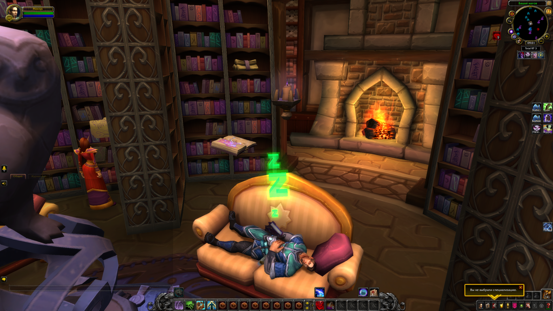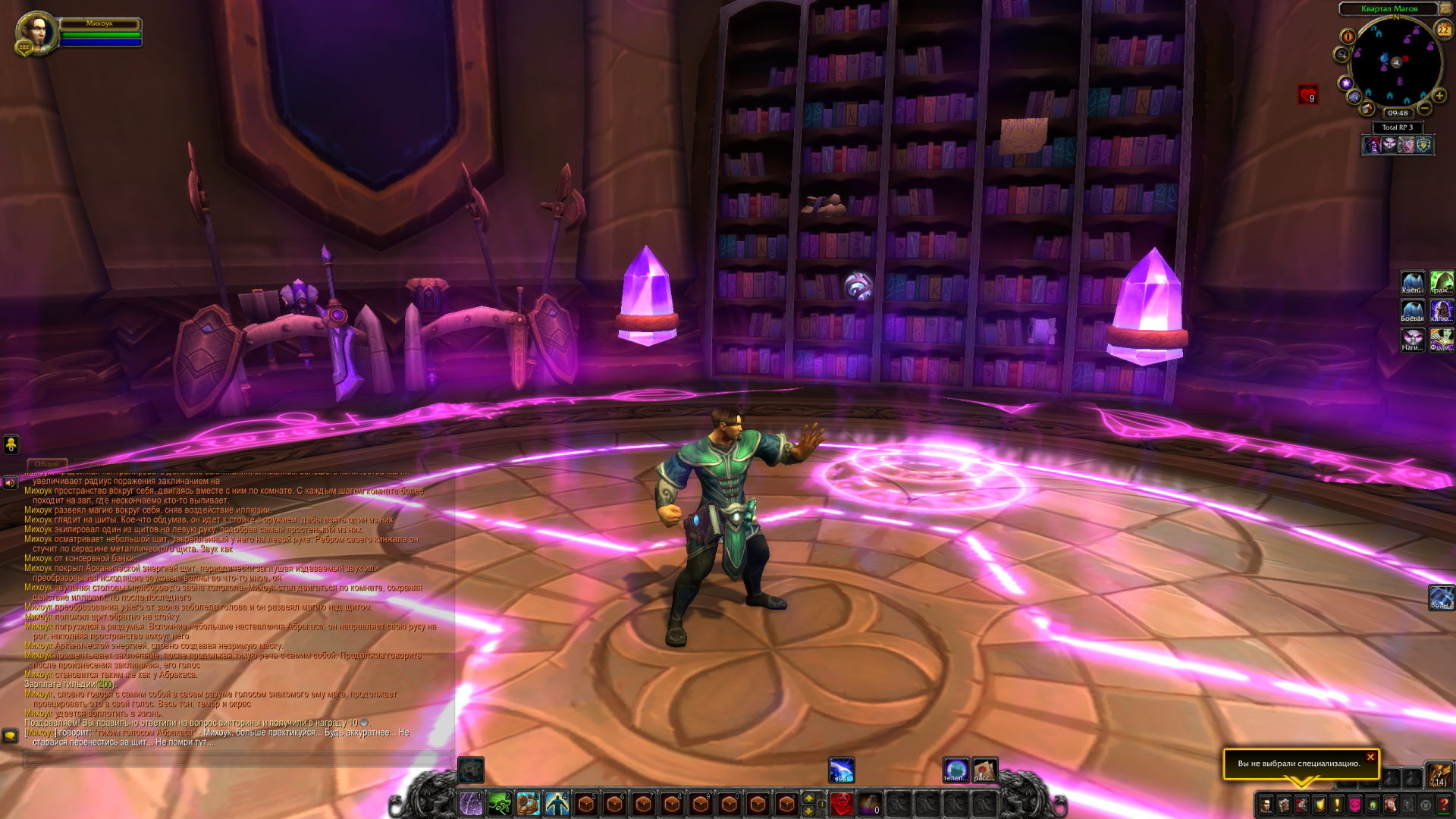 С наступлением нового дня Михоук уже позабыл, что ненароком уснул в библиотеке, удобно расположившись на мягком диванчике. Придя в себя и обдумав, чем он хочет занять себя по утру, маг берет свои вещи и отправляется в зал для практики, по дороге взяв с собой подушку, о которой в скором времени совсем позабыв.