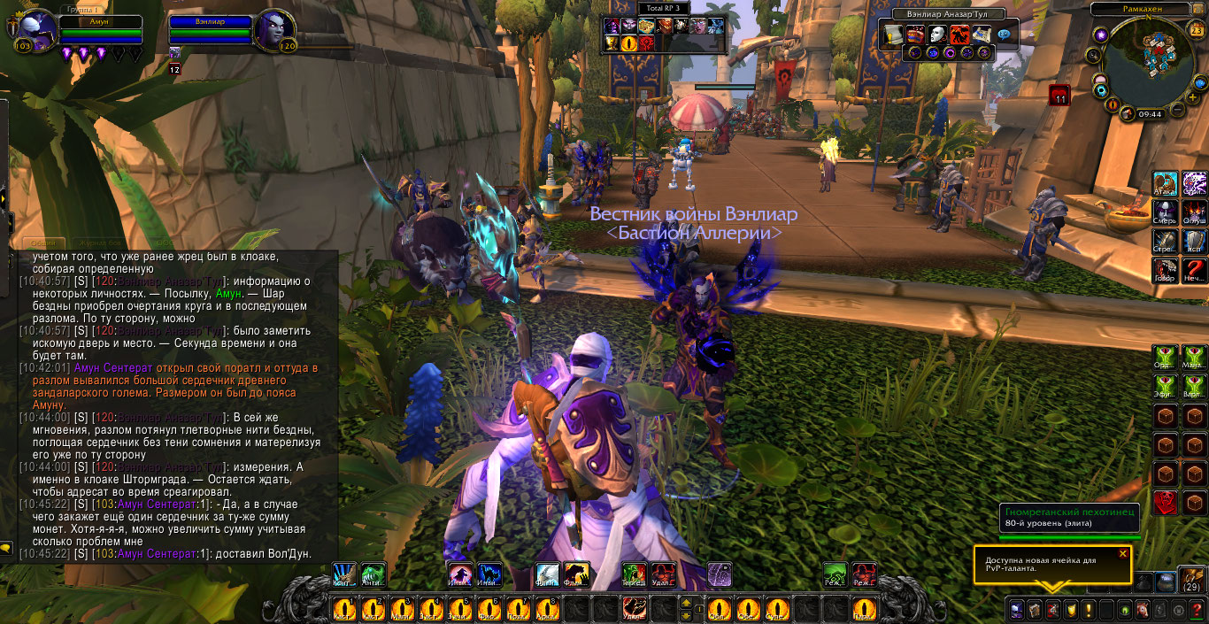 Молнии вырвались из ладоней Амуна и окружили броню Вэнлиара, который на протяжении оного действа чувствовал покалывания. Работа была выполнена на высшем уровне спустя пару минут. Но Амуну тоже нужна была помощь в доставке кое-какого товара по адресу. Вчера поздним вечером эфириал провёл аукцион и распродал свой хлам. Сердечник древнего зандаларского голема купила калдорай в шляпе и попросила доставить его в клоаку Штормграда. Вэнлиар исполнил просьбу Амуна и они разошлись по своим делам.