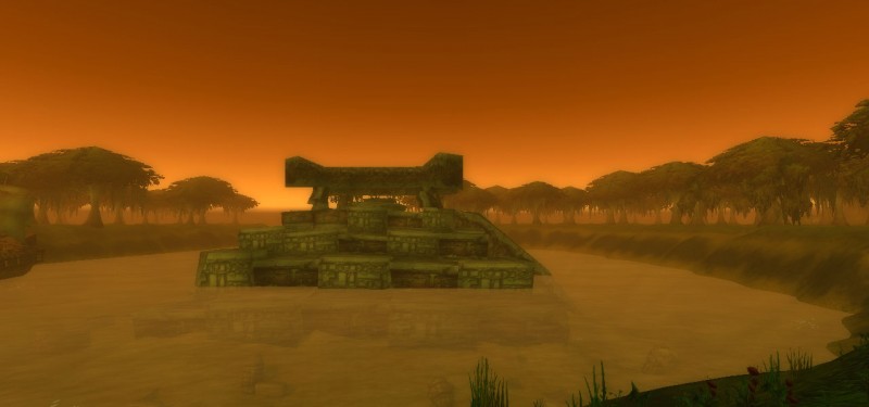 Уже когда работа была закончена.Уже отойдя от верската баткари увидели одну длинную трость и одну короткую палку.Но они все равно не поняли зачем она нужна.Потом-же Гро'каш пошел искать железо.Но… Как в болоте можно найти железо? Гро'каш ушел достаточно далеко от гарнизона и увидел затонувший храм посередине огромного озера